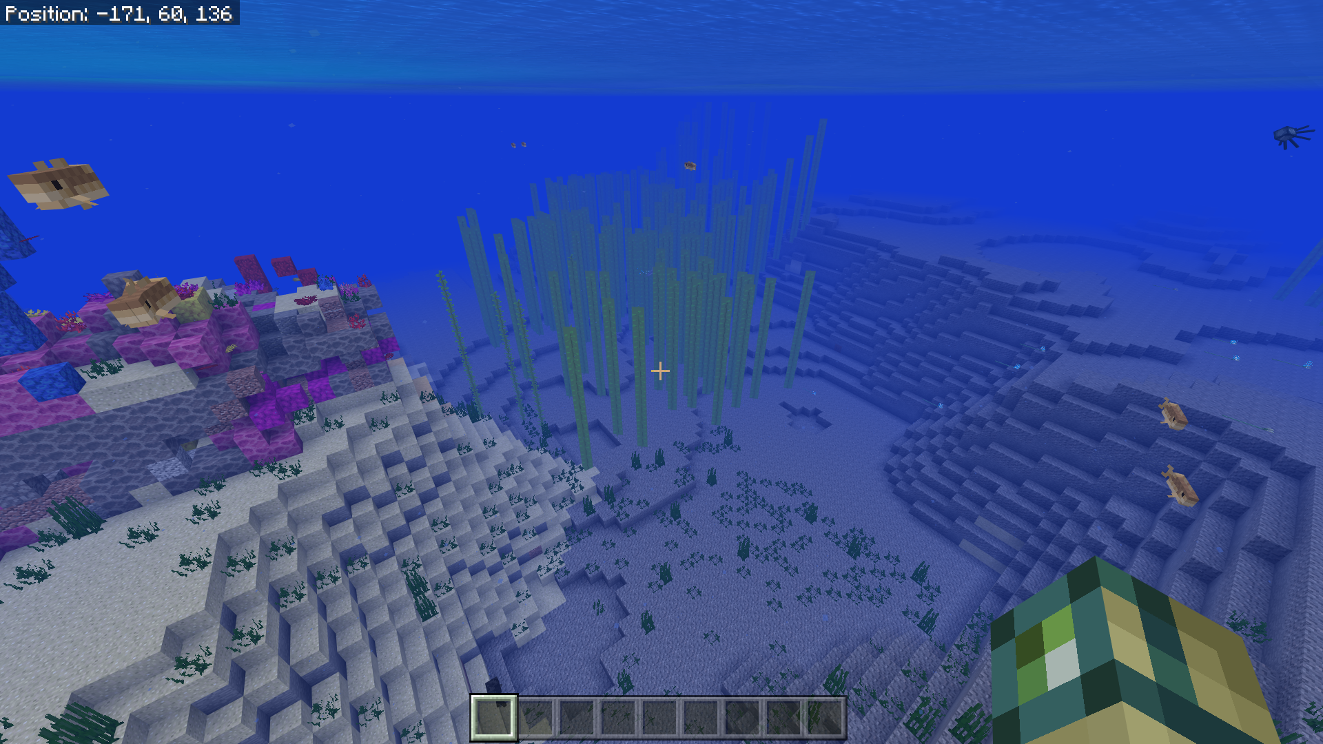 I am using a resource pack to increase my underwater vision. Kelp transparency range doesn't scale with the view distance, causing visual bugs like the one in the screenshot below.