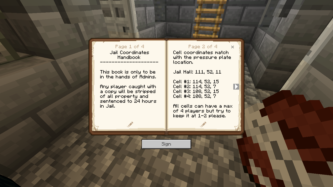 I tried to write a book for my realm's Jail (have not tested this on singleplayer) and the second page (with coordinates on it) continuously either gets deleted or corrupts when I close the book then open it again, or if I sign it. I attached a photo sequence of the typed page, then the corrupted page. I don't have a photo of the deleted page.