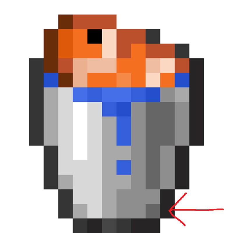 The texture for the "Bucket of Tropical Fish" has an extra darkened pixel in the lower-right of the texture, which is not present on the other fish bucket textures or on the Tropical Fish bucket's texture in Java Edition.