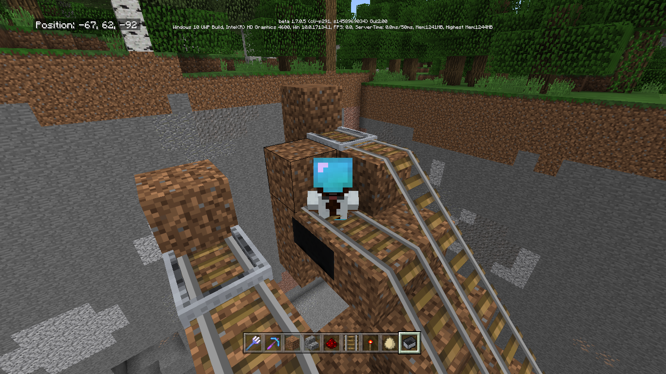 4. After reloading the game, the minecart returns to its normal position above ground.