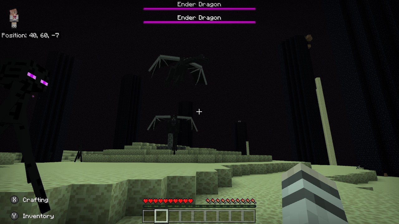 While trying to fight the end dragon with my brother we get killed so we go back in the end and there is 2 dragons