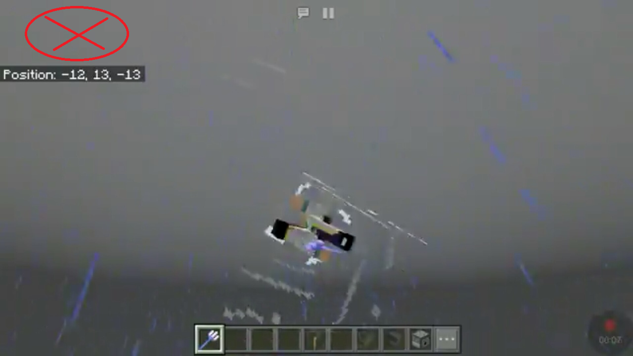 When trident is enchanted with riptide and it we have turned on paper dolland troughting it in raing weather it's animation willn't appear. Also if we look person from other way and trought trident, person haven't hand lifting animation.