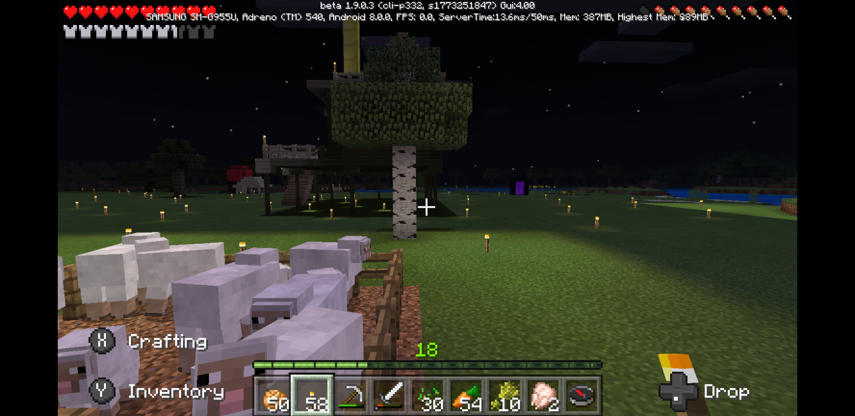 I am running on a Samsung Galaxy S8 +. There are issues with torch lighting, as well as the normal lighting around trees. The torch will emit light for the block it's in, but the other blocks around will be completely dark. The trees will look really dark underneath, until you break a leaf block, and the lighting goes back to normal. Animals feet did not move when walking, but this was fixed with restarting the game.