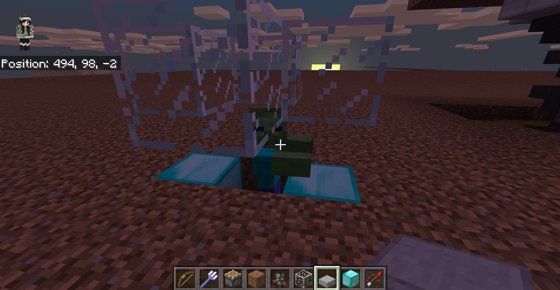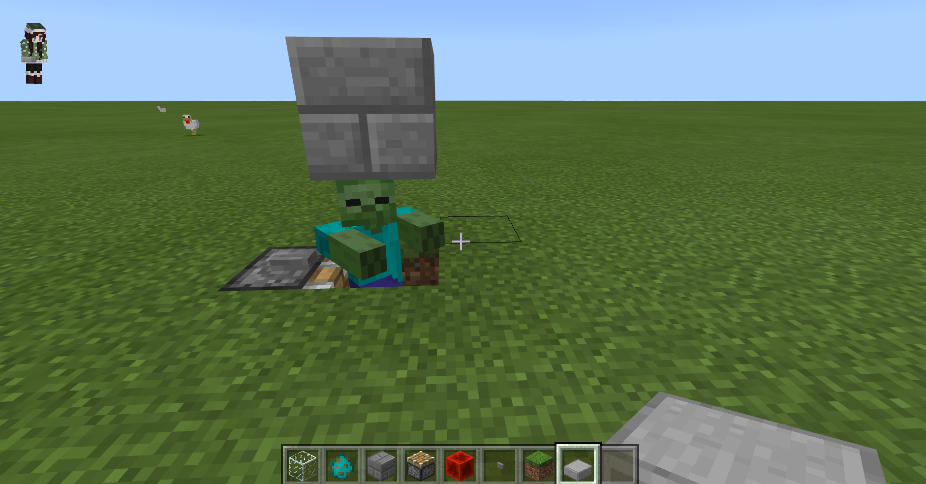 Spawn a creeper, zombie, drowned, zombie pigman, witch, villager, or zombie villager in the hole.