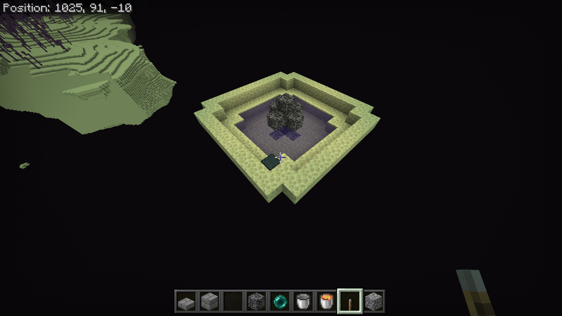 Using an Ender Pearl or breaking the bedrock and dropping directly into the portal results in getting stuck with no movement or world render at the coordinates of the entry portal