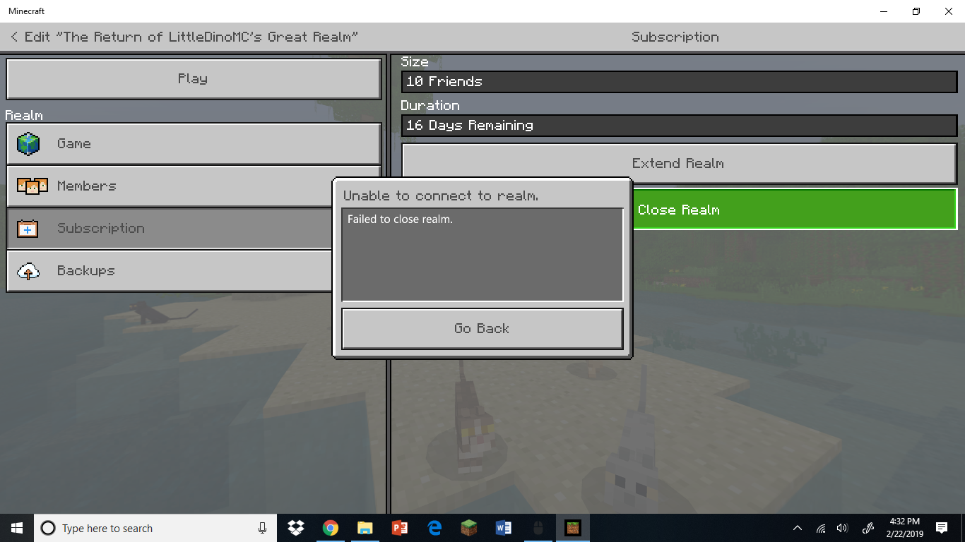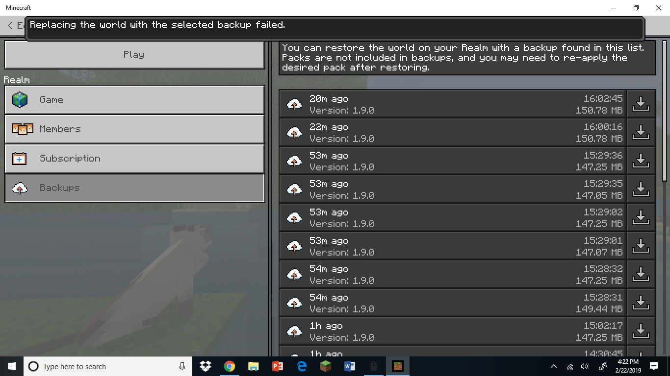 Currently, I have just started a realm playing on it daily for the last week or two. Not having more than 4 players on at a time I didn't think it would get too laggy that fast. But, when I and two of my friends were online we came across some chunks that wouldn't load. We backed up the realm and tried going to the same place again and it worked for a while until we encountered another place where this happened. I downloaded the world to my computer, tried to reset the realm and upload the world back to the realm. But when I attempted to reset the realm it failed, and now I cannot join the realm at all or reset/download/back it up with any means possible.
