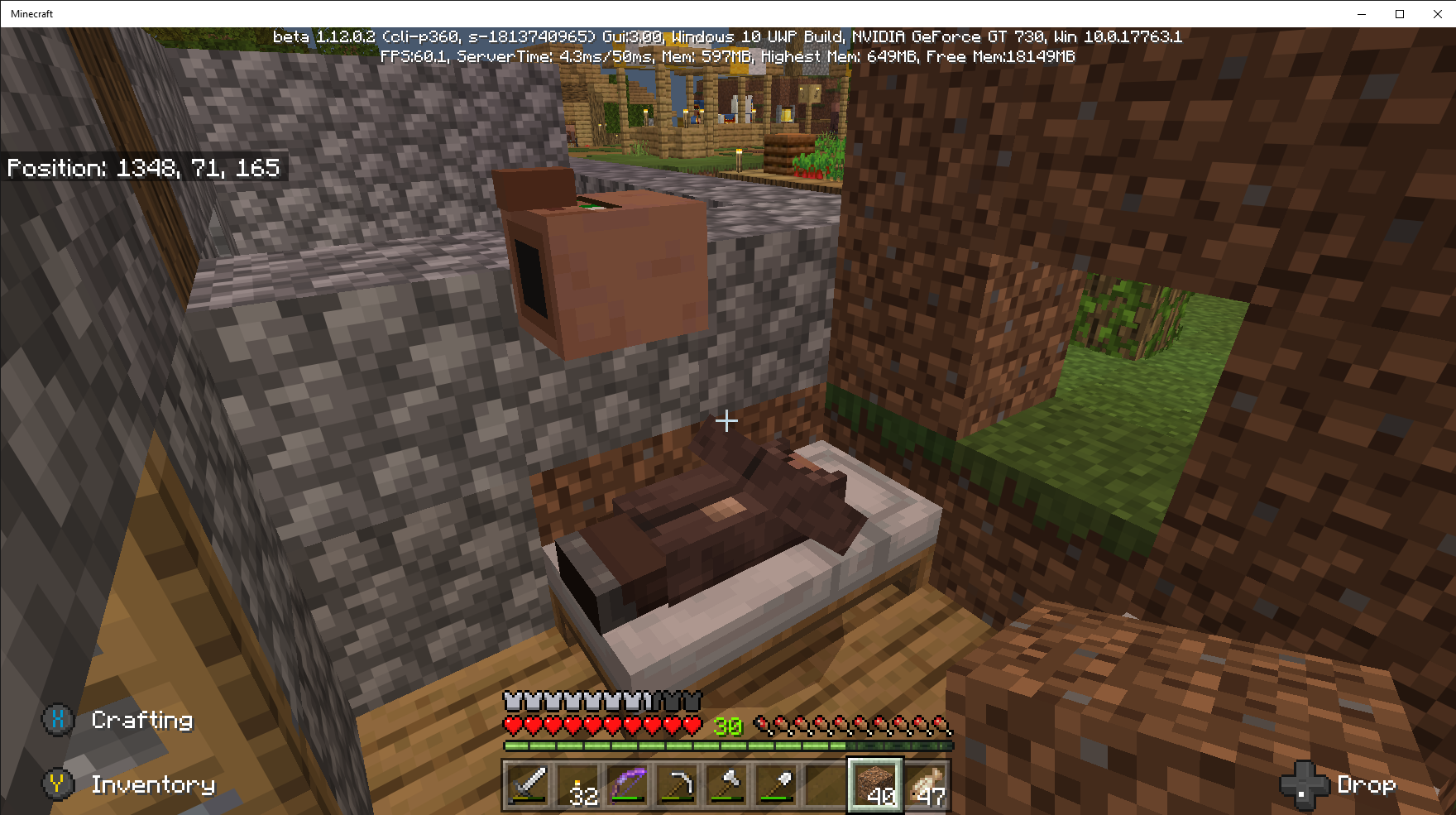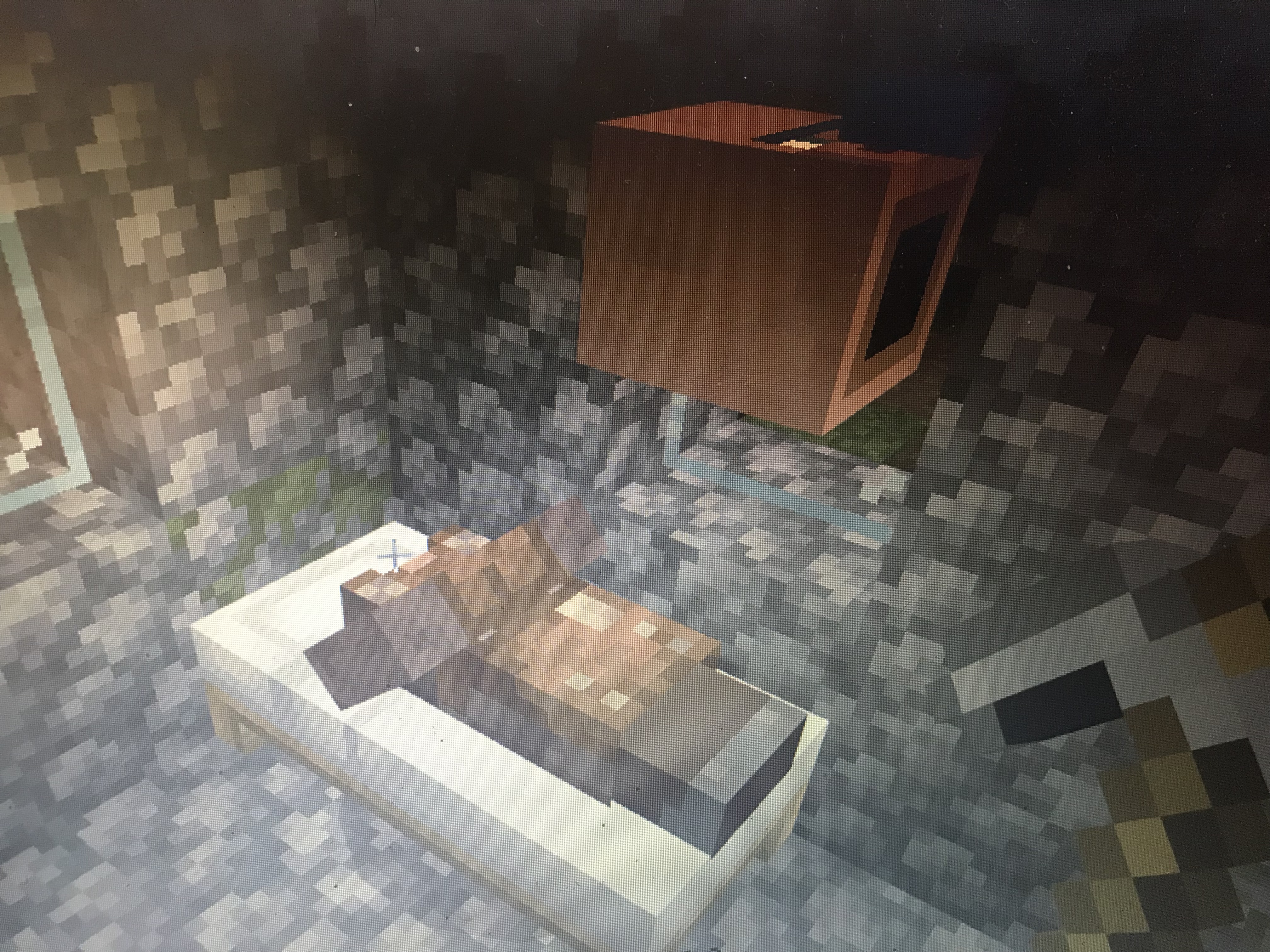 The cat's head is lower than it should be, and the villager's heads are floating above them when they sleep.