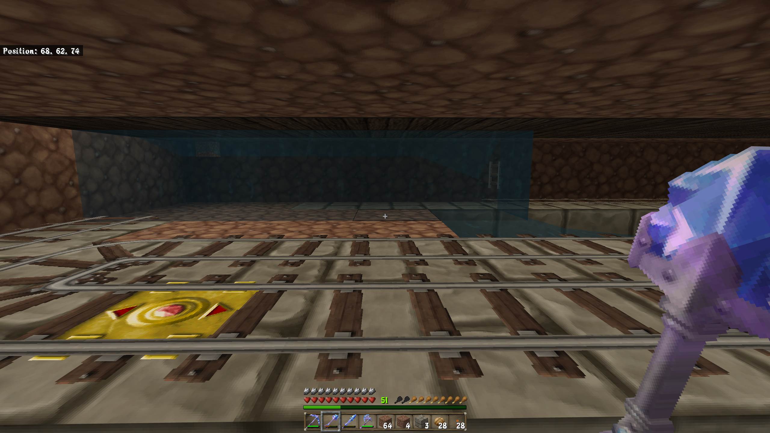 Screenshot: Dirt adjacent to slab removed and added again - the center block below the waterlogged slab became a water source.