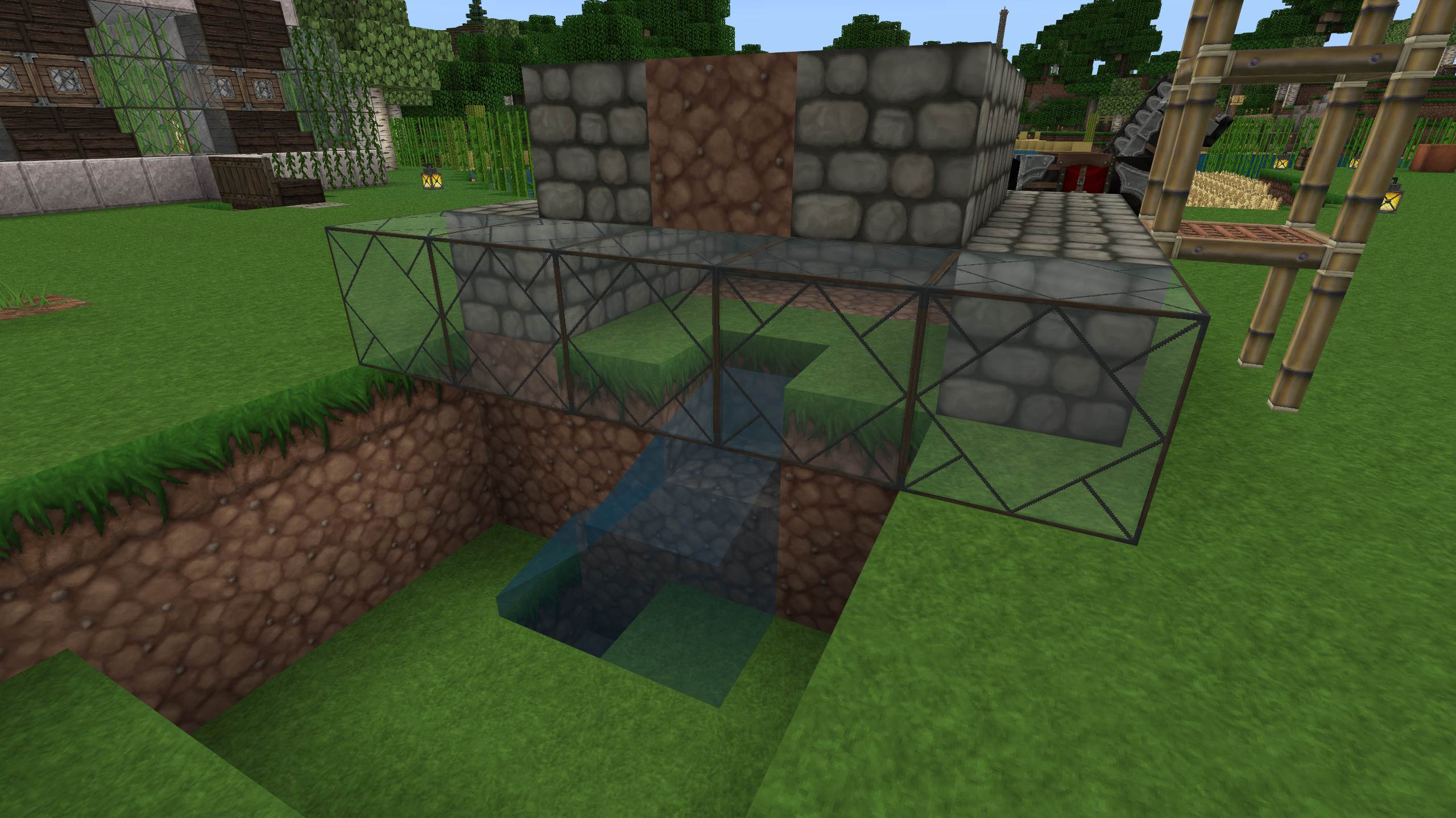 and 5. Screenshot: Test with another block removed so that the flowing water doesn't reach the slab