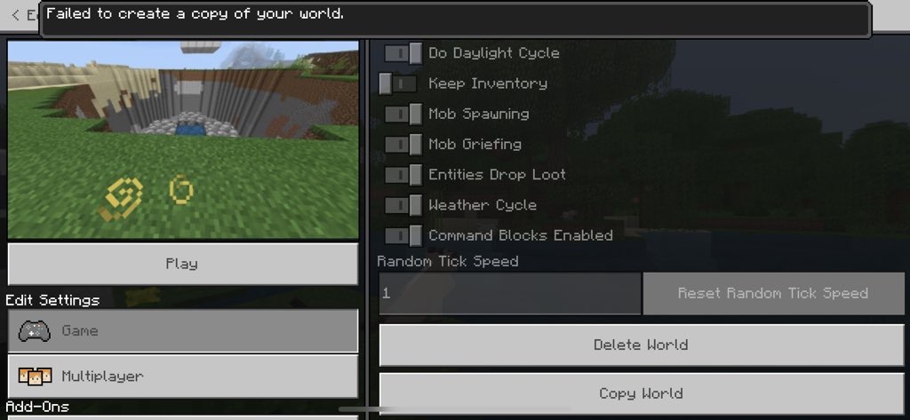 I usually backup my world every day by making a copy of it. It is larger than 1 GB, but it used to work fine until today, on 1.11.0. As you can see in the picture below, I get an error message.