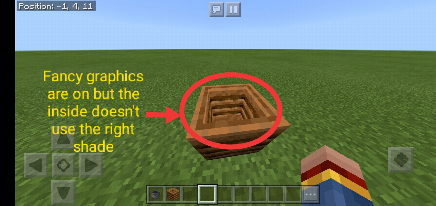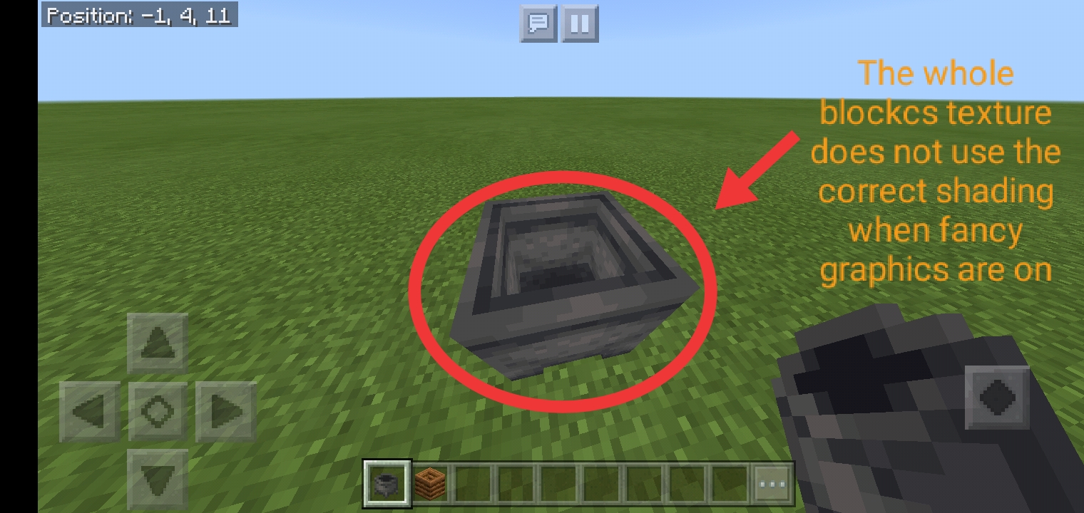 The composter and cauldron block on the Bedrock edition doesn't use the correct texture when fancy graphics are on. Composter's problem was its inside. The outside was fixed but the inside still does not move on to the bug. Whilst the cauldron doesn't use the proper shade at all on both of its outside and inside.