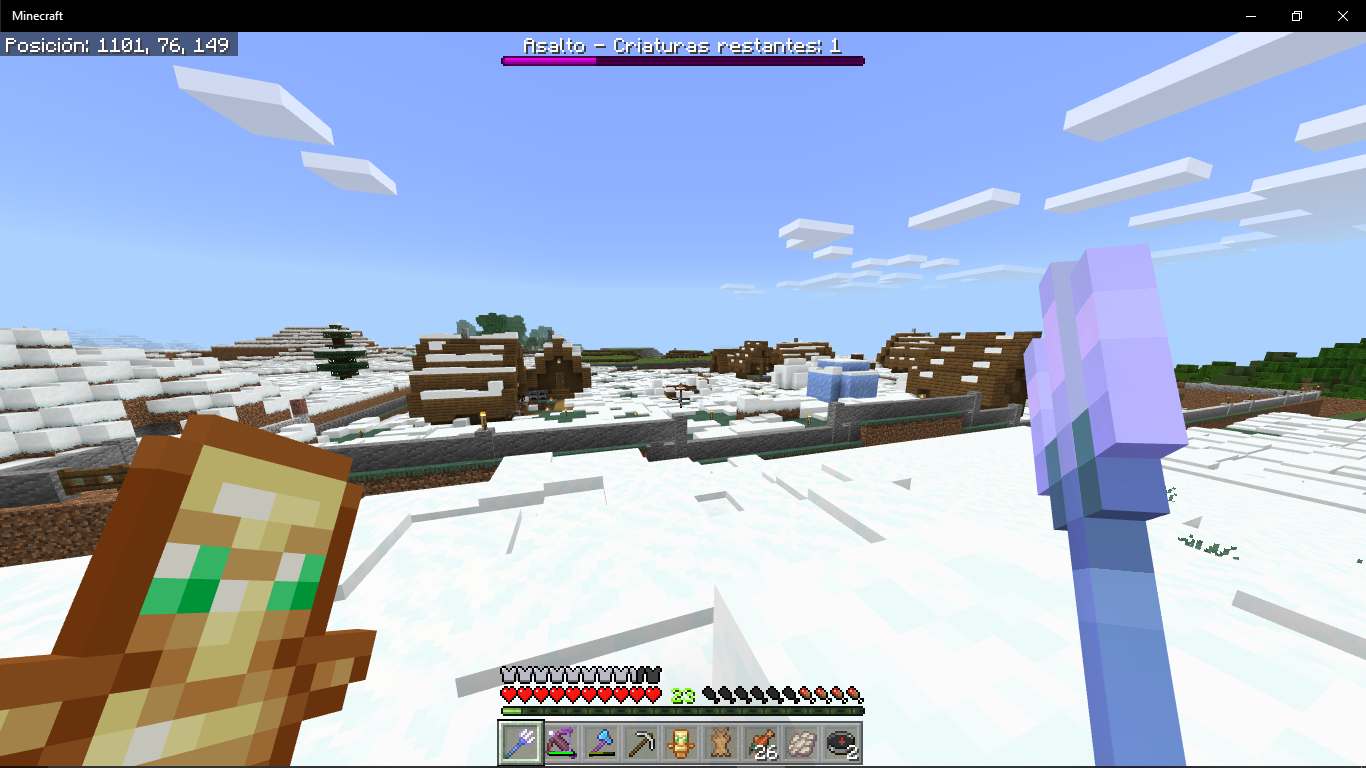 I started a new assault on my village... in the first wave, the fisrt mobs appeared, but one of them went throught a nether portal, I finished all of them but the assault indicator showed one enemy remaining, the one who went throught the portal, then I went to the nether and I killed the last one, but back on the overworld the assault indicator still showed one enemy remaining, the invasion is buged and still active. Please... somebody help.