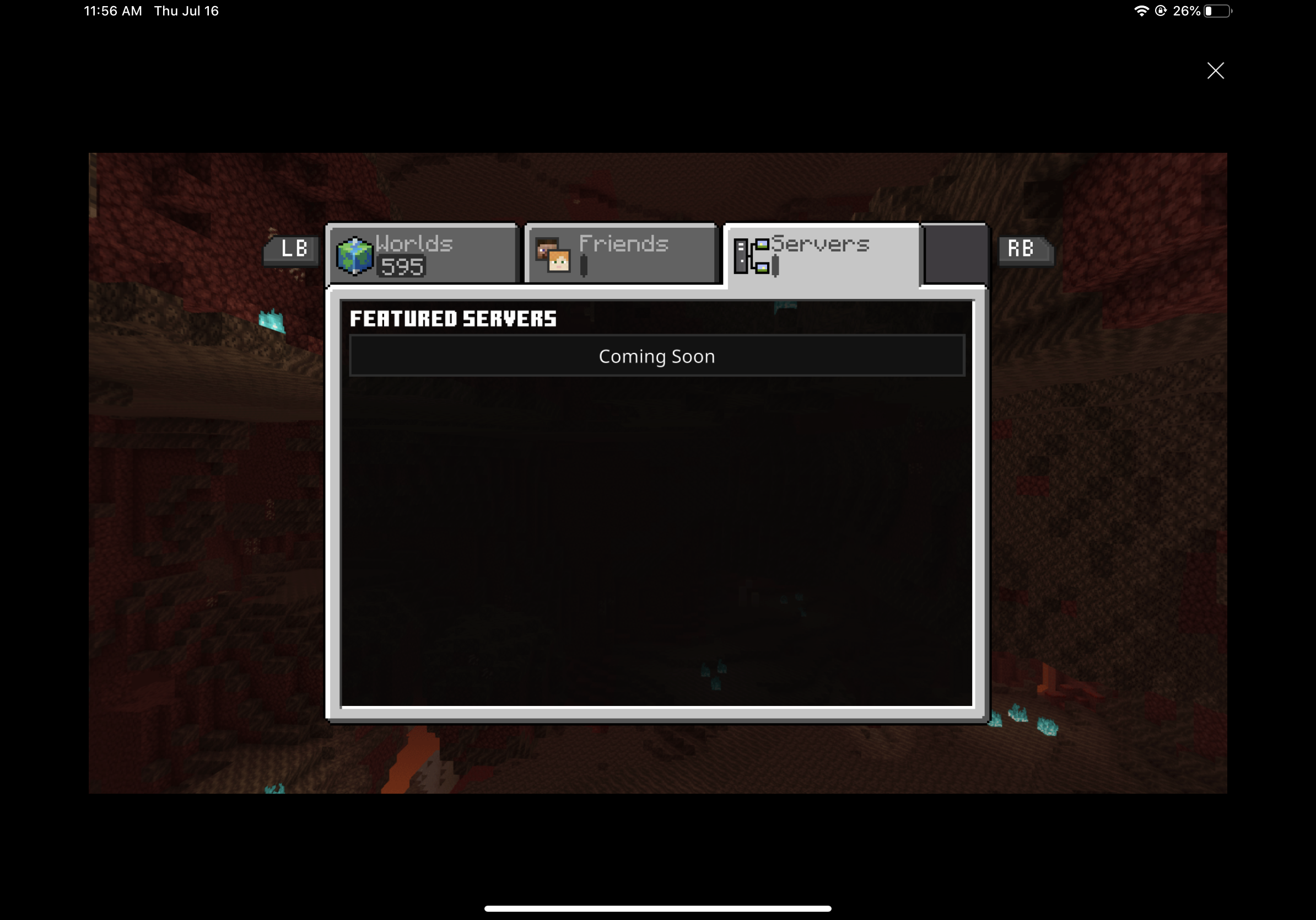 (I play on an iPad 6, running iPadOS 14) it seems this is an issue with Xbox live accounts, because I can’t access marketplace, servers show as “coming soon”, and in-game on the pause menu it says on the player sidebar “oops! Your Xbox live account was disconnected” or something along those lines. This isn’t an issue with my internet. Is anyone else experiencing the coming soon server screen experiencing this too?