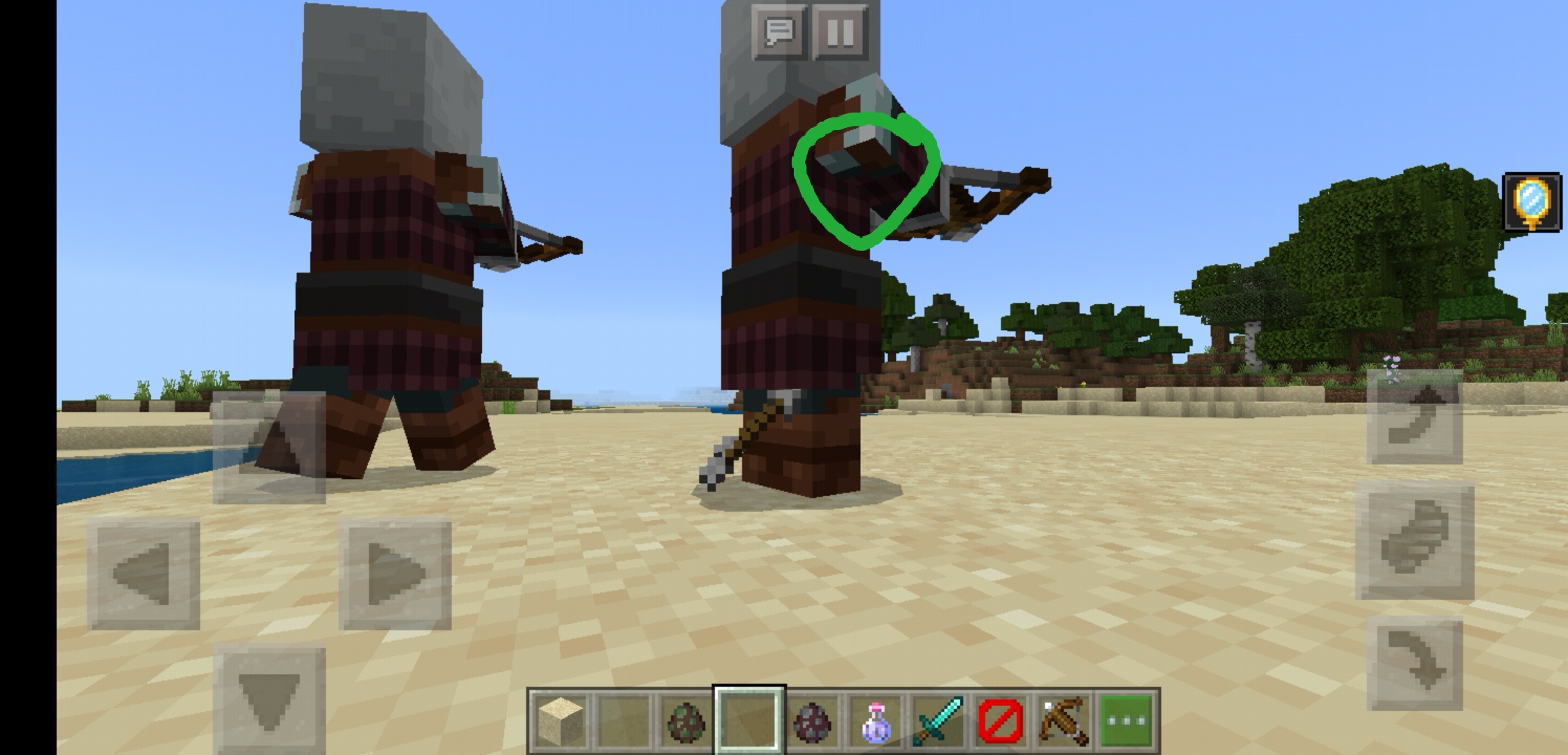 /replaceitem entity @e[type=pillager] slot.weapon.mainhand 1 air/replaceitem entity @e[type=pillager] slot.weapon.mainhand 1 air3. Look behind the pillagers shoulders/arms, the top part is different.