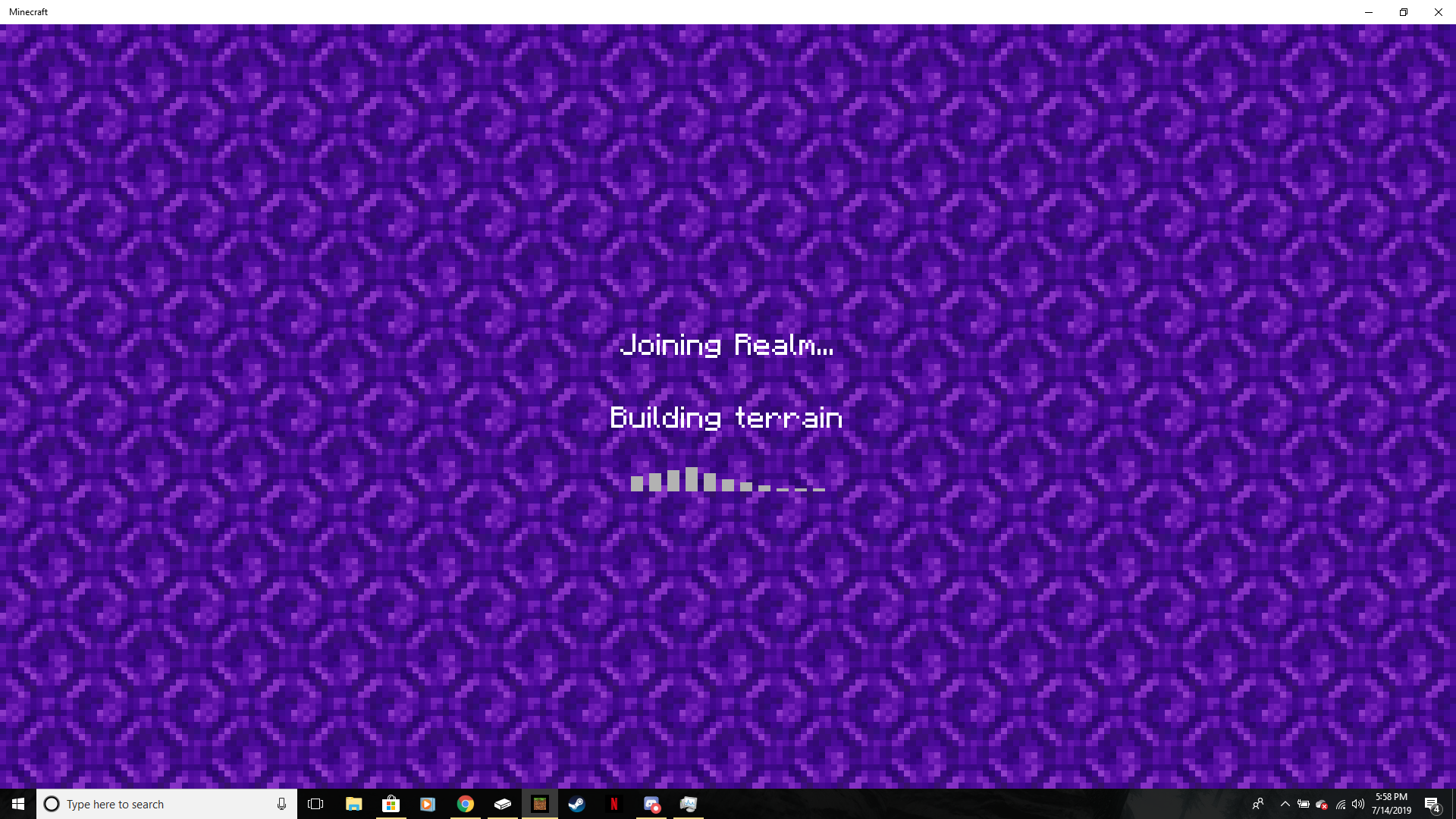 So I've been playing on a Realm my friend made for about a week now, and just tonight, while I was playing with three other members of the server, we all began experiencing chunk loading errors in the same spots. About five minutes after that, since the chunks were not loading in, I left the game and tried to rejoin. Now, however, I have been unable to rejoin the Realm, and I am getting stuck on the "Building Terrain" screen. My friends have not had this issue, and they say that when I try to join, my avatar appears, but I am frozen in place. Trying to approach me causes them to be "teleported away" as they put it.