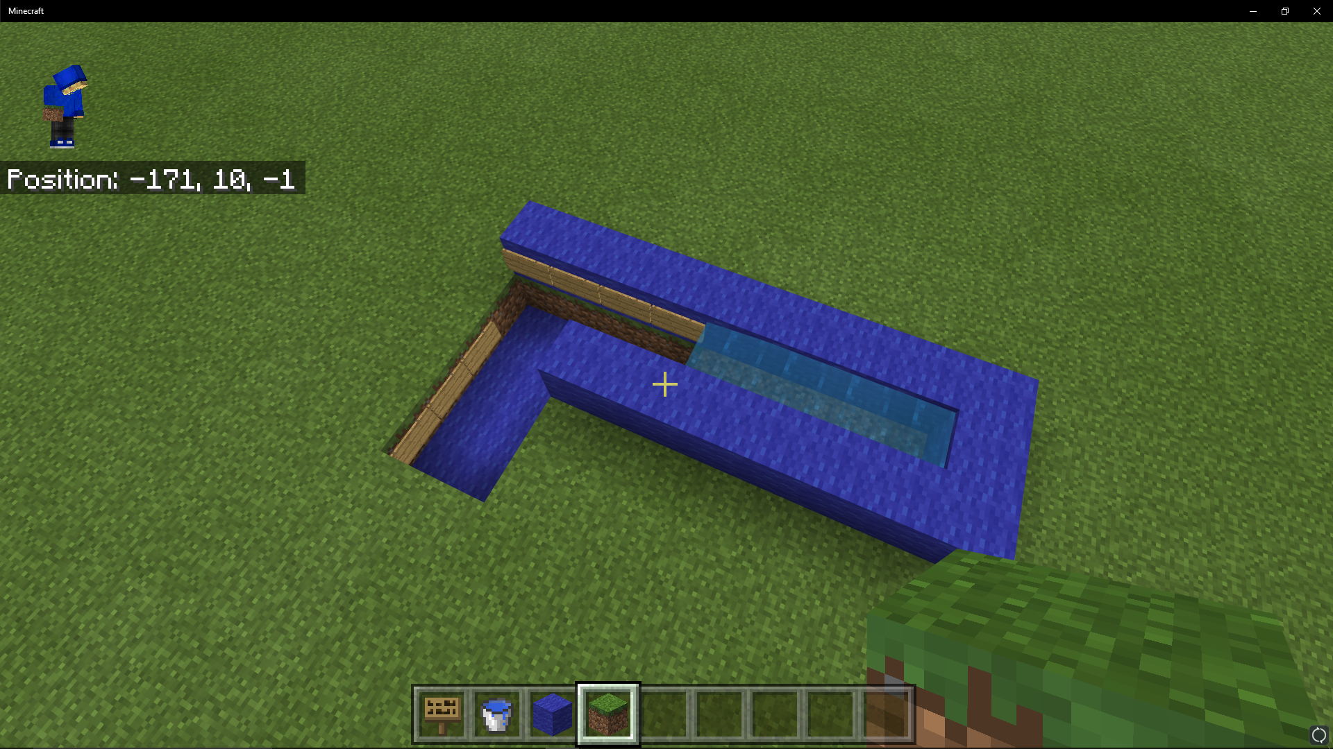 Sprint swimming up a vertical water stream caused by waterlogged slabs results in the player being able to maintain the swimming animation outside of water. As long as the player has blocks above them, you can continue to swim forward while pressing the spacebar.