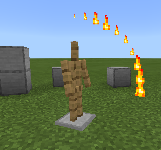 An armor stand's x-rotation will move towards zero over the course of a couple of ticks, mimicking other mobs. This differs from the behavior exhibited in Java Edition, where the x-rotation remains the same and does not change.