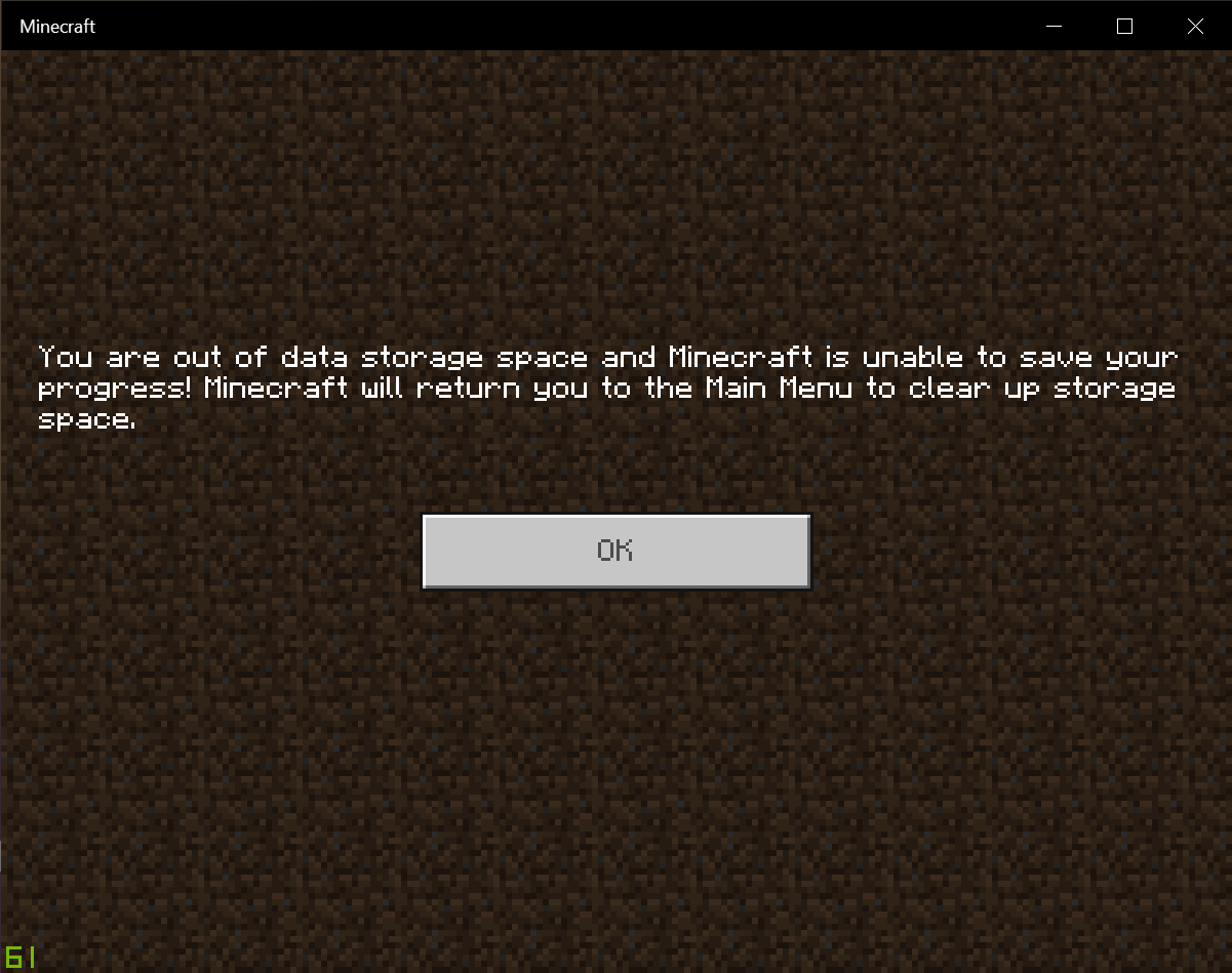 Even though I have enough storage, Minecraft says I don't It's also only that world