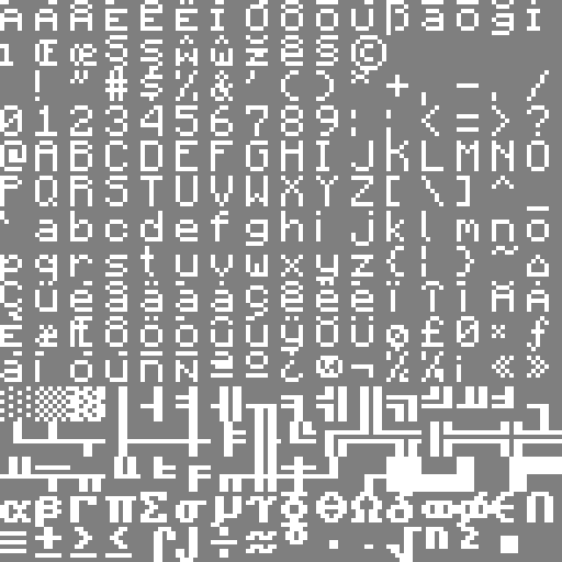 Hi, David! I've been working on a font for a resource pack & have been using default8.png to change the appearance. Unfortunately, when any character outside the image set is introduced, everything defaults to Mojangles & there is no customization present. Do you happen to know which characters belong in the final columns of row 2, & the last column of rows 8 & 16? (A pentagon is present in (8,16), but it doesn't appear to be linked to any characters I'm aware of, such as Greek delta (Δ)...)