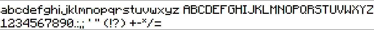 Characters f, " and * do not match the actual in-game font.
