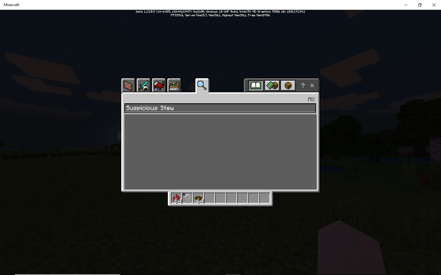 I can't seem to find Suspicious Stew in the Creative menu. When I search for it in the search bar it doesn't come up either.