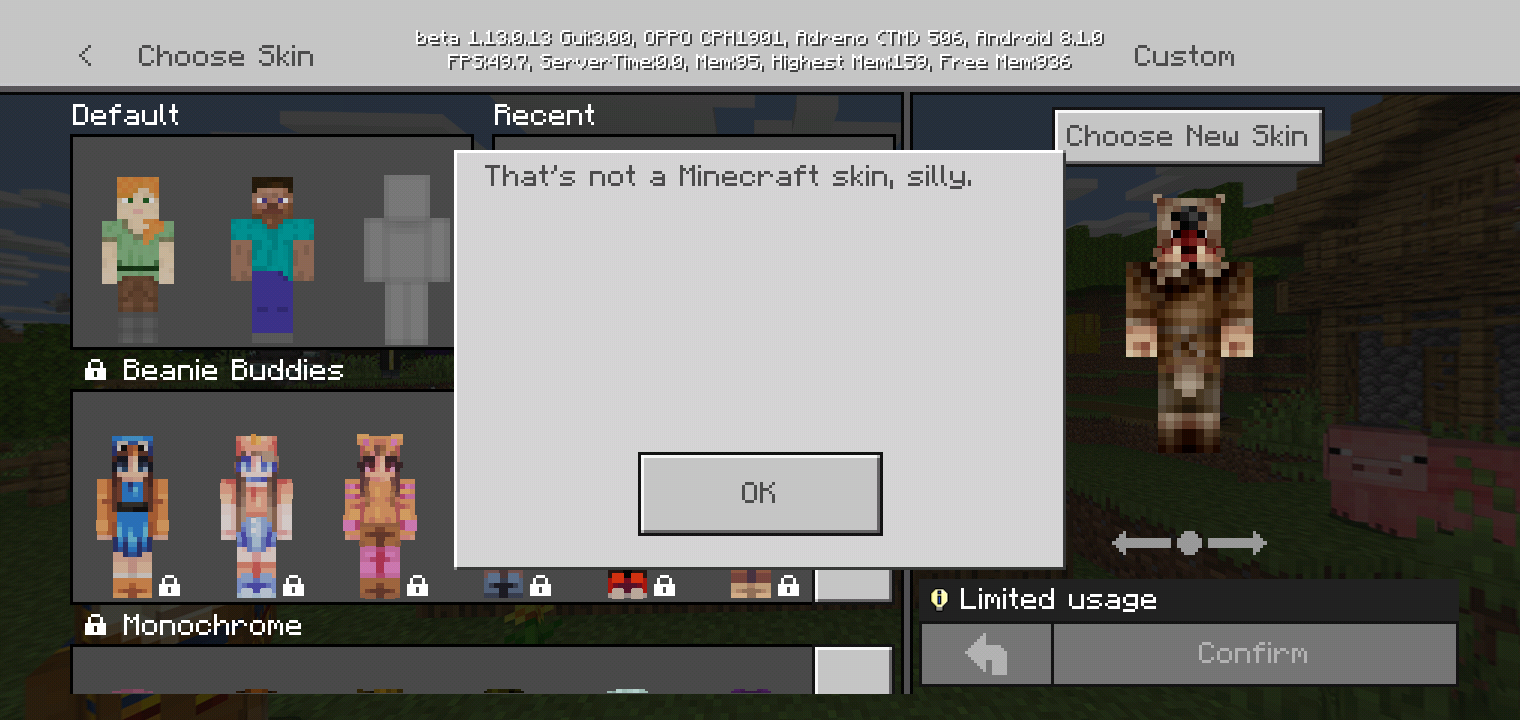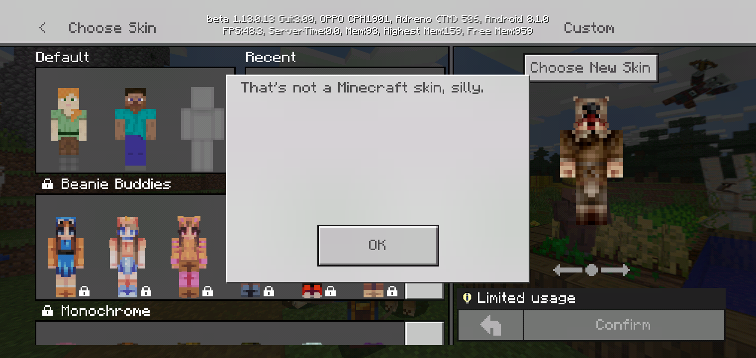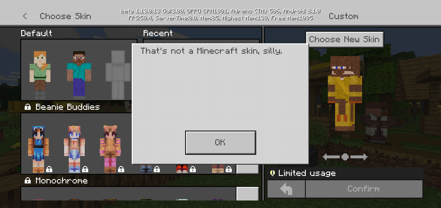 When i am change skin 64x32 and 64x64, the error message "That not a minecraft skin, *****"