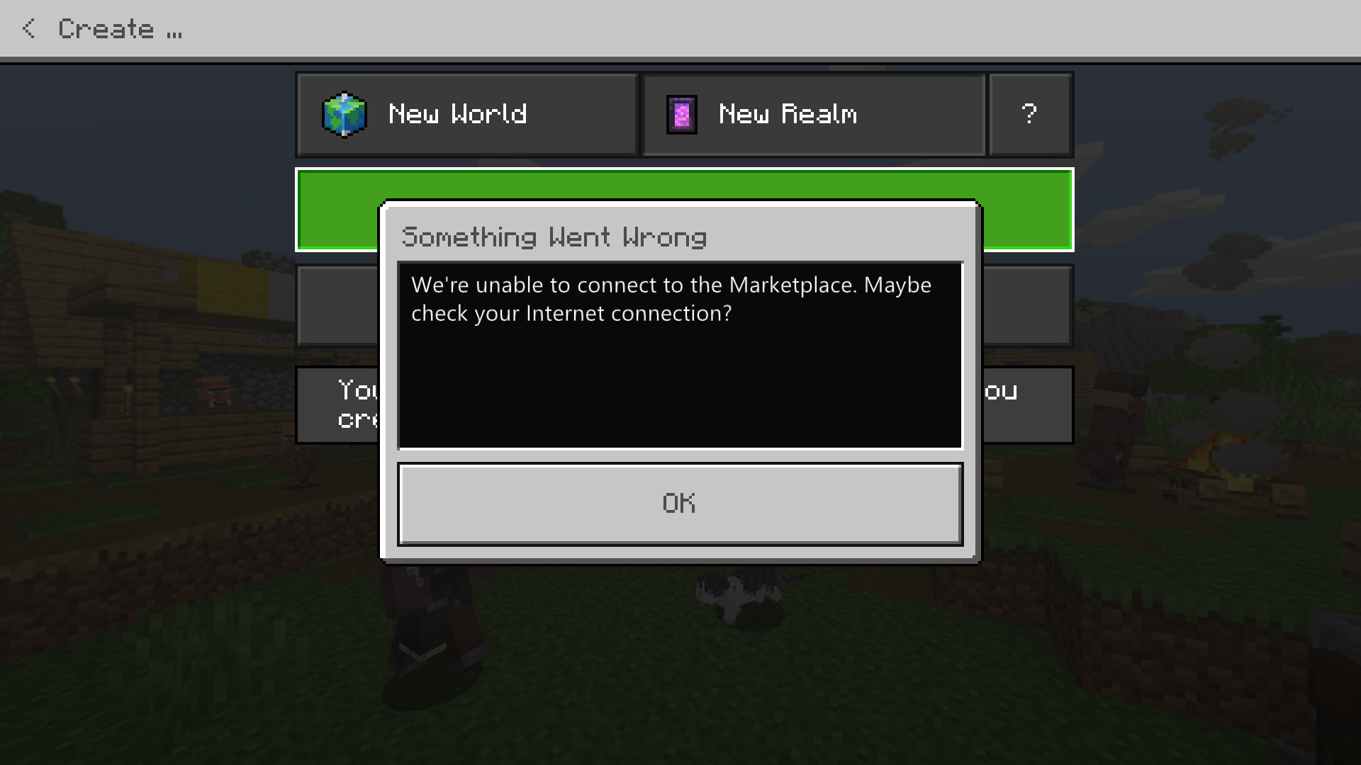 The Realm icon in my worlds list disappeared and when I tried to create a Realm, an error window popped up saying ,,Unable to connect to Marketplace. Maybe check your Internet connection?'' I checked my wifi connection, it was all fine.
