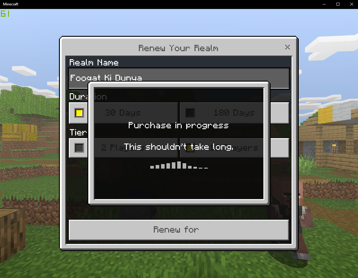 Me and my friends recently bought Minecraft (Bedrock Edition) for Windows 10 so we can play some multiplayer and have fun in Realms, We both decided that one of us will use our 30-day trial and then Extend/Renew the realm by paying when that trial ends. |