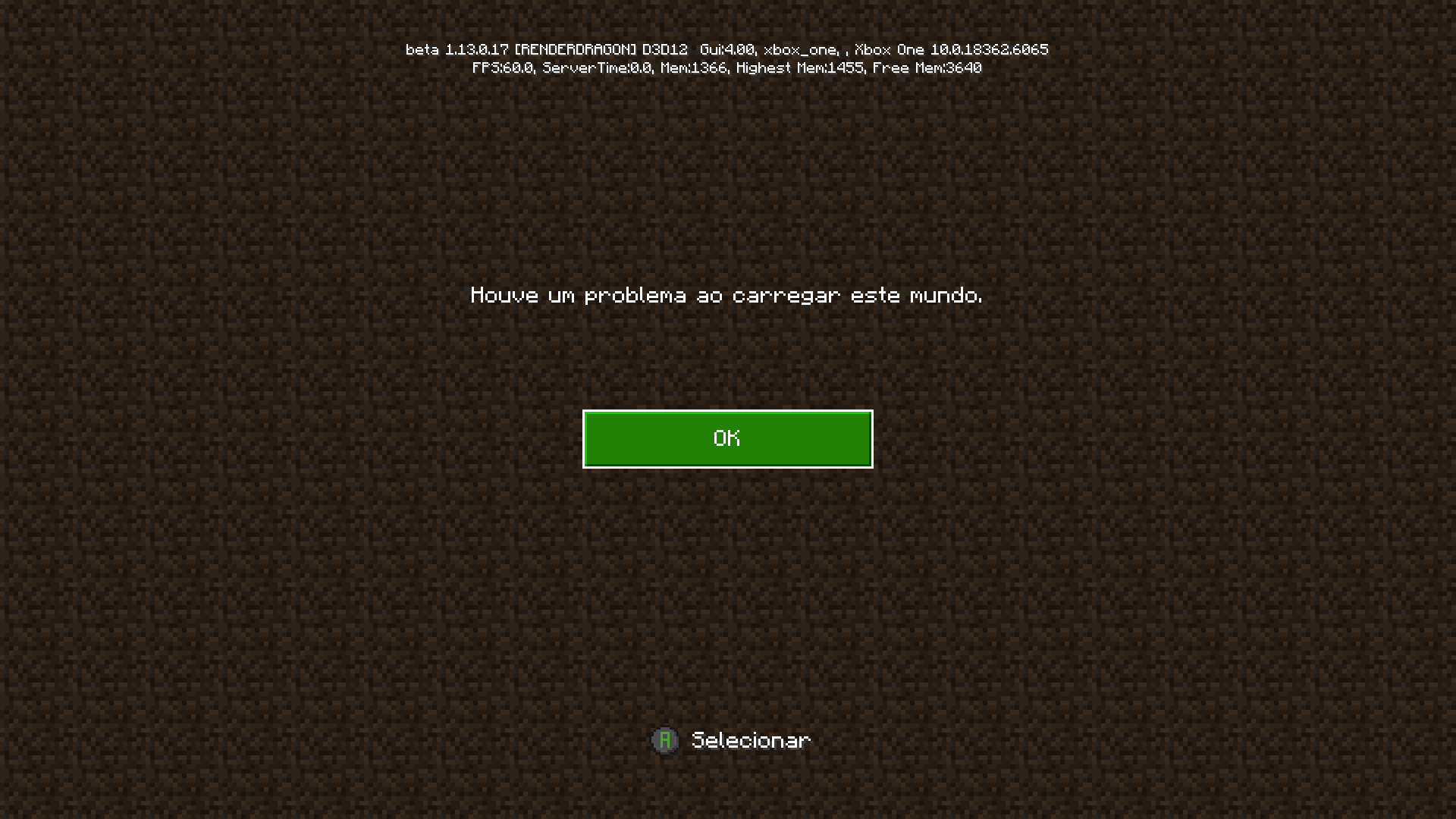 my world does not load only this message appears: there was a problem loading this world i have several world copied but none of them works at all but trying to create a new world with you plays all the worlds created in the long run do not load this started after update 1.13.0.17