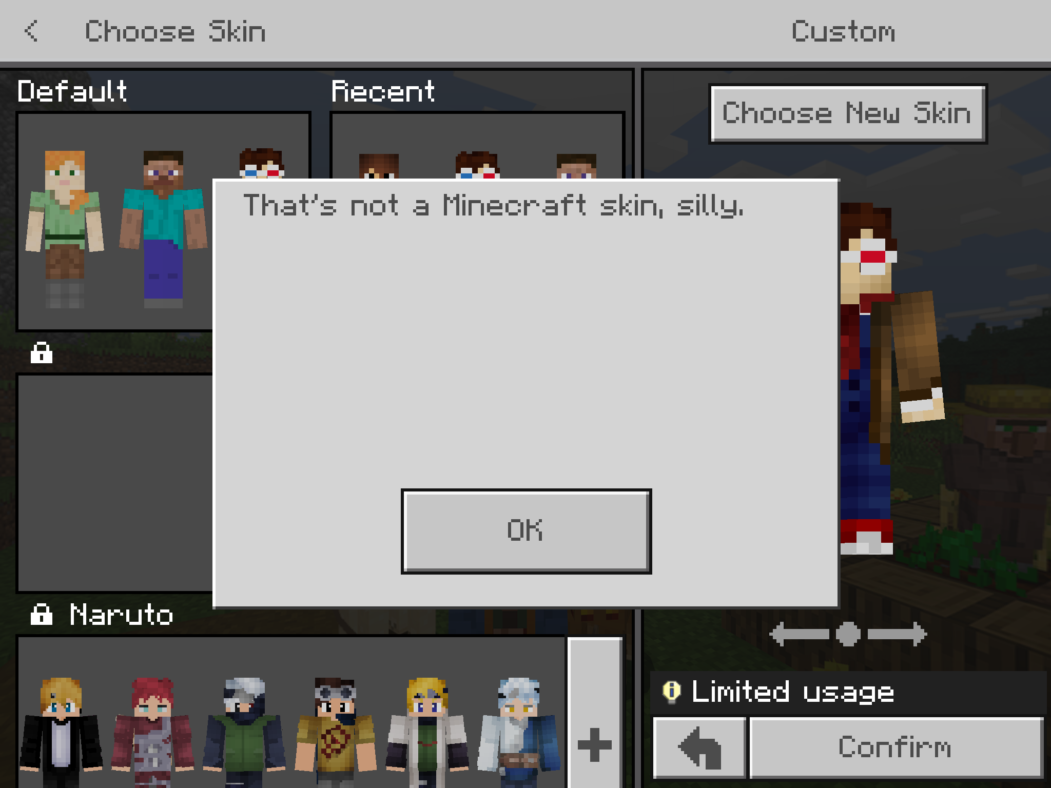 I would like to get to change my skin into a custom made one but every time it says that’s not a Minecraft skin silly even though it clearly is