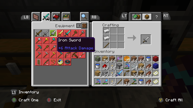 Cobblestone appears with normal background and stick appears with red background in crafting area.