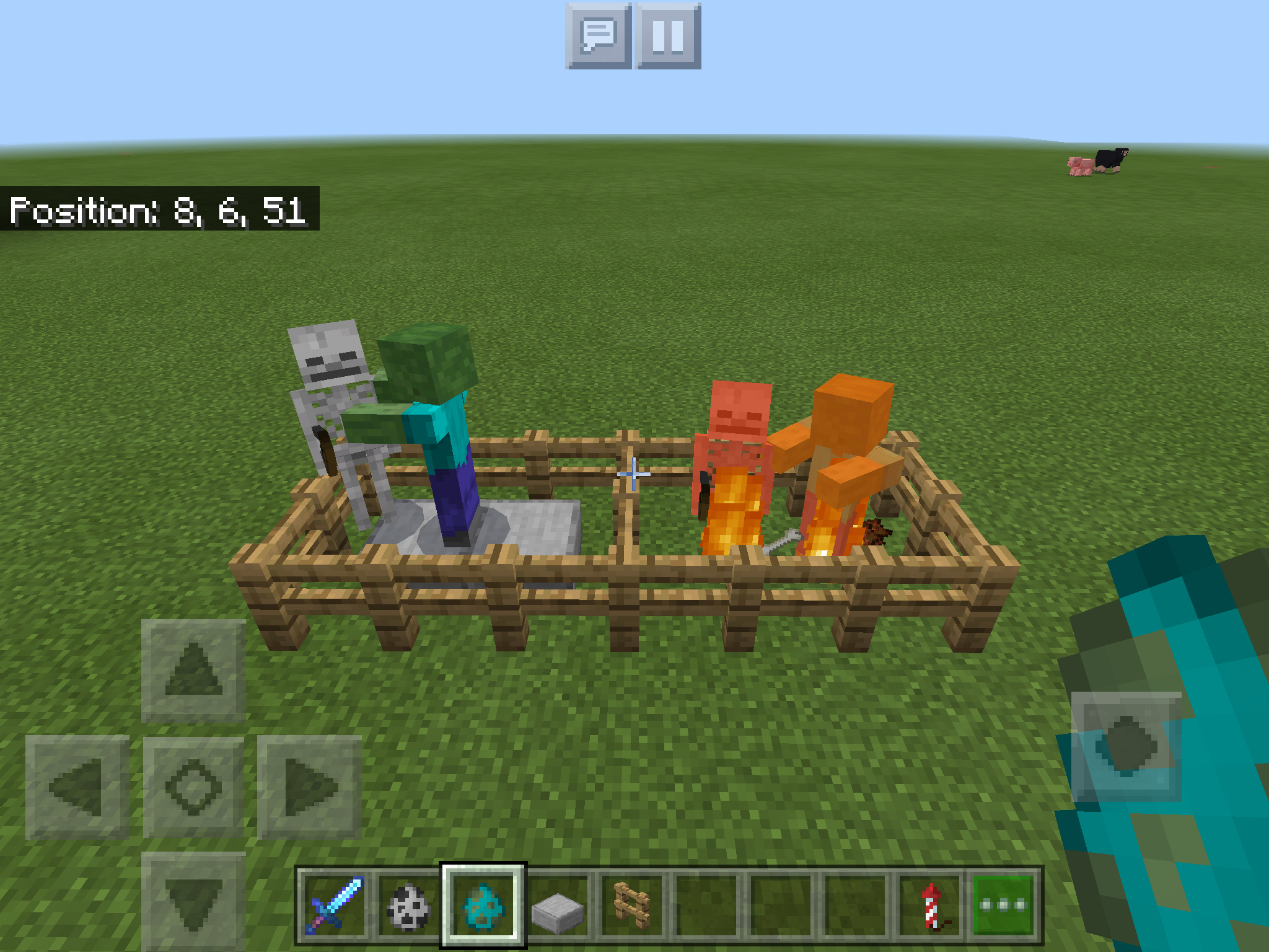 Zombies and skeletons don’t burn when standing on top of bottom slabs, even when standing in direct sunlight.