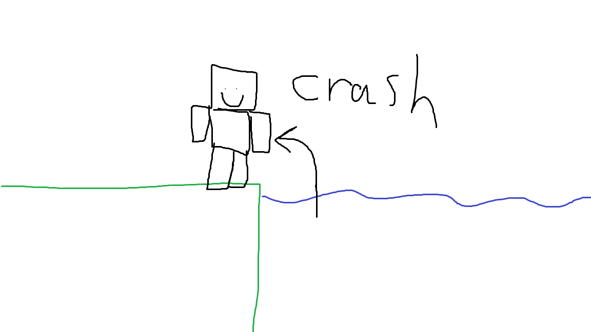 I exit some not flowing water onto a block and the game crashes. Bad MS paint sketch included