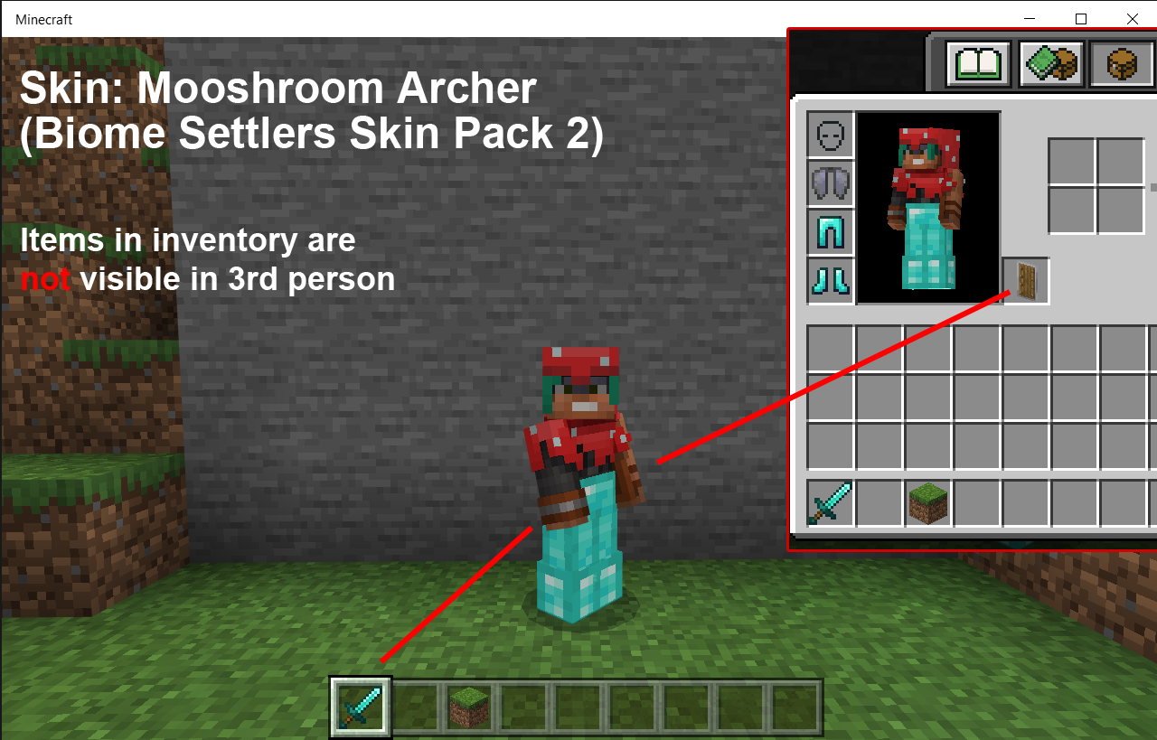 Reproduce: Yes, every time I use some of the Biome Settlers Skin Pack 2 skins (like the Mooshroom Archer) the items turn invisible.
