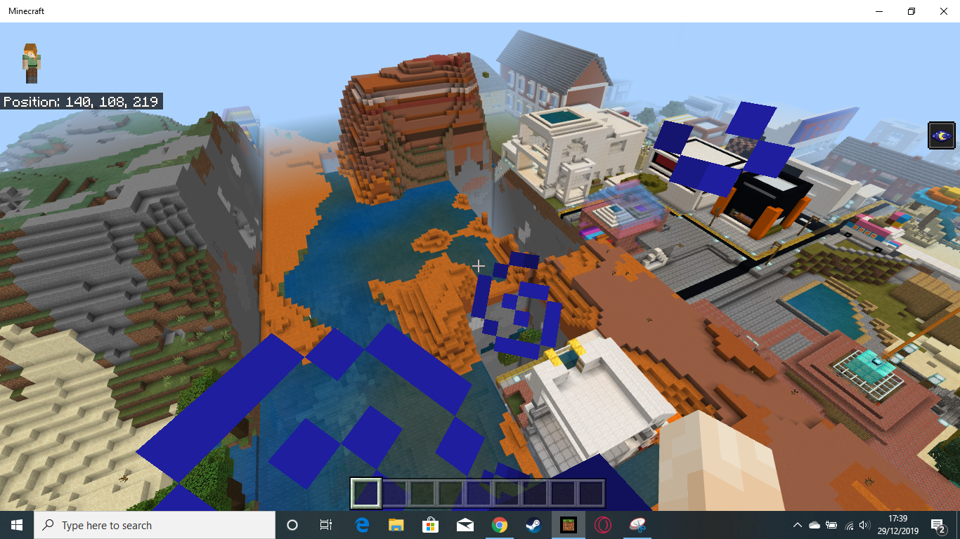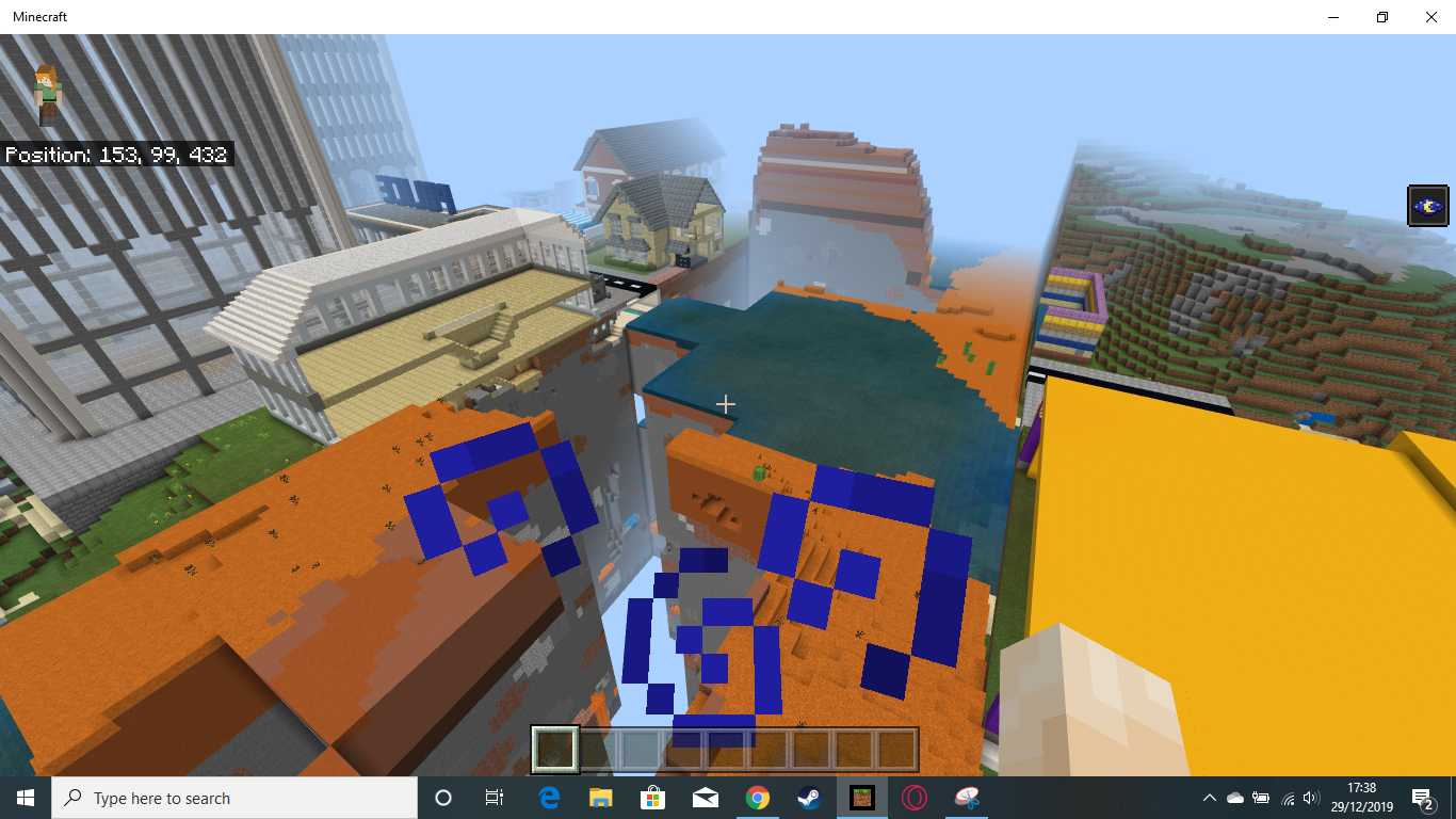 I went onto minecraft to find my self logged out, so i logged in and found my skin to be steve, which was the gingerbread man before, so i went to change it and found that i had no skin to change it to because they were all gone. now when i went onto my world called friends city i had a shock, i saw that my city had been split into two by a mesa biome moreover wasnt completely a mesa biome as it had parts that went right through the world into the void.