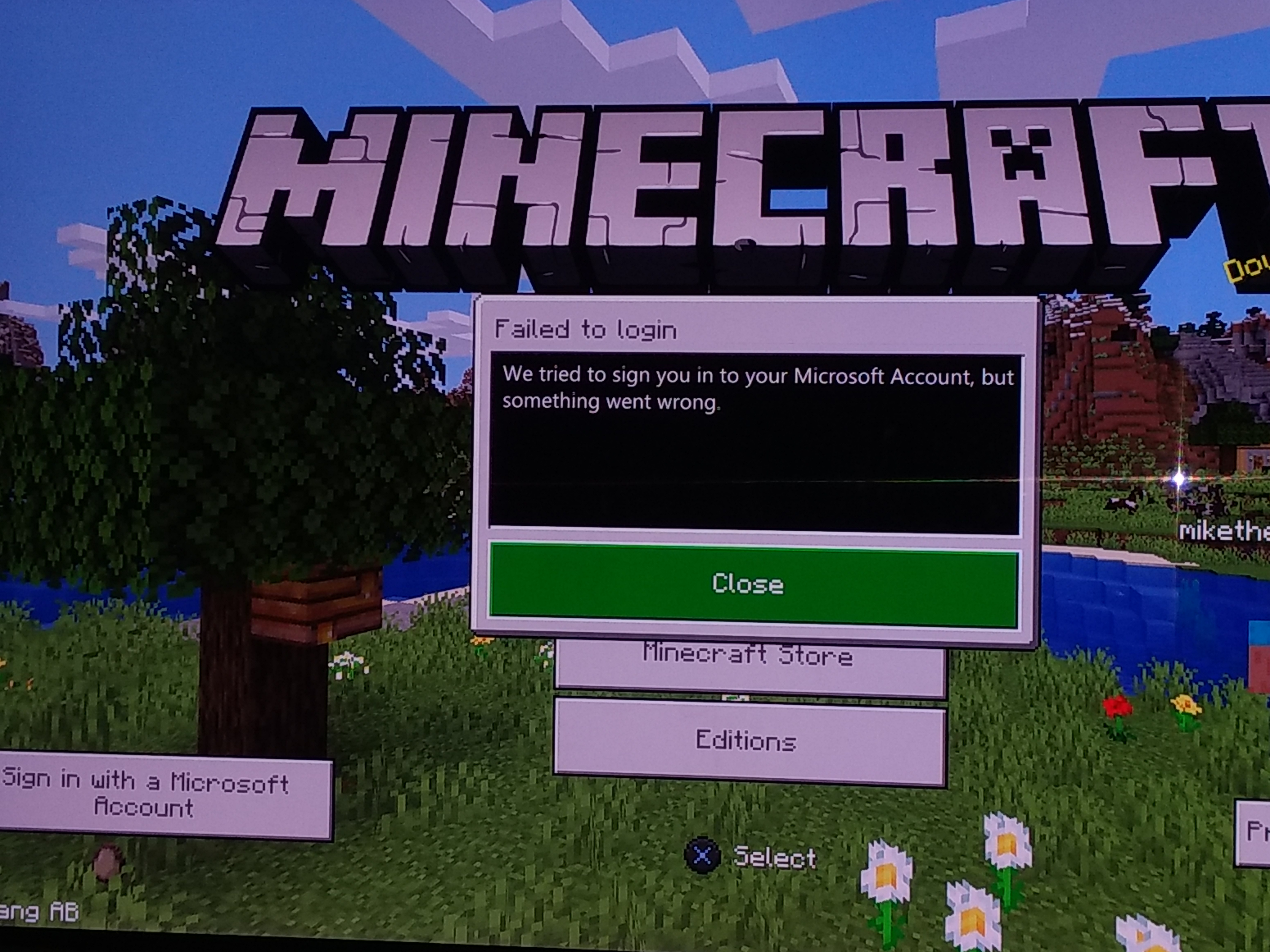 I then try to manually log in, and it says "failed to login. We tried to sign you in to your Microsoft account, but something went wrong."