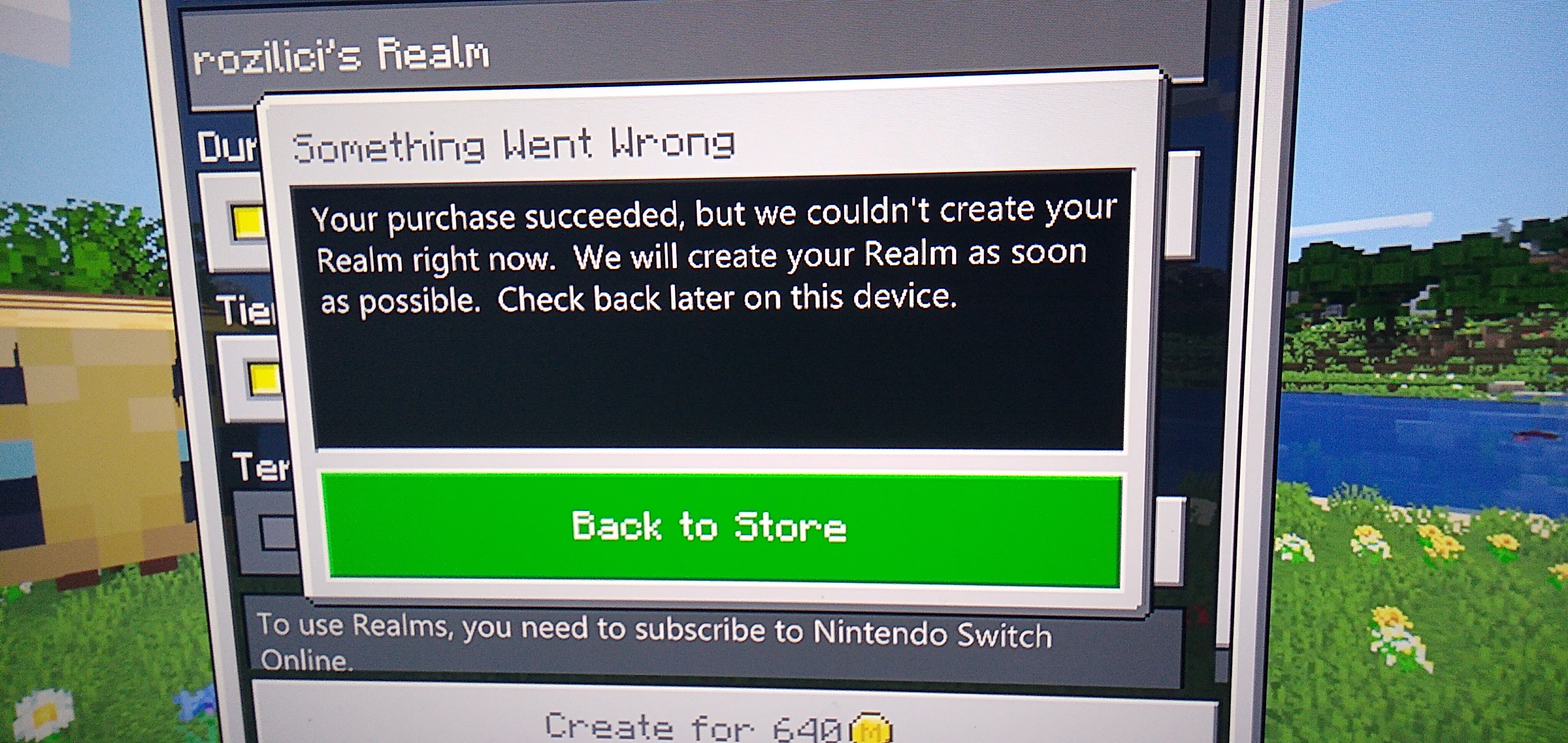 Created a 10-player realm with Realms Plus, a message came up that said, "Your purchase succeeded, but we couldn't create your Realm right now. We will create your Realm as soon as possible. Check back later on this device."