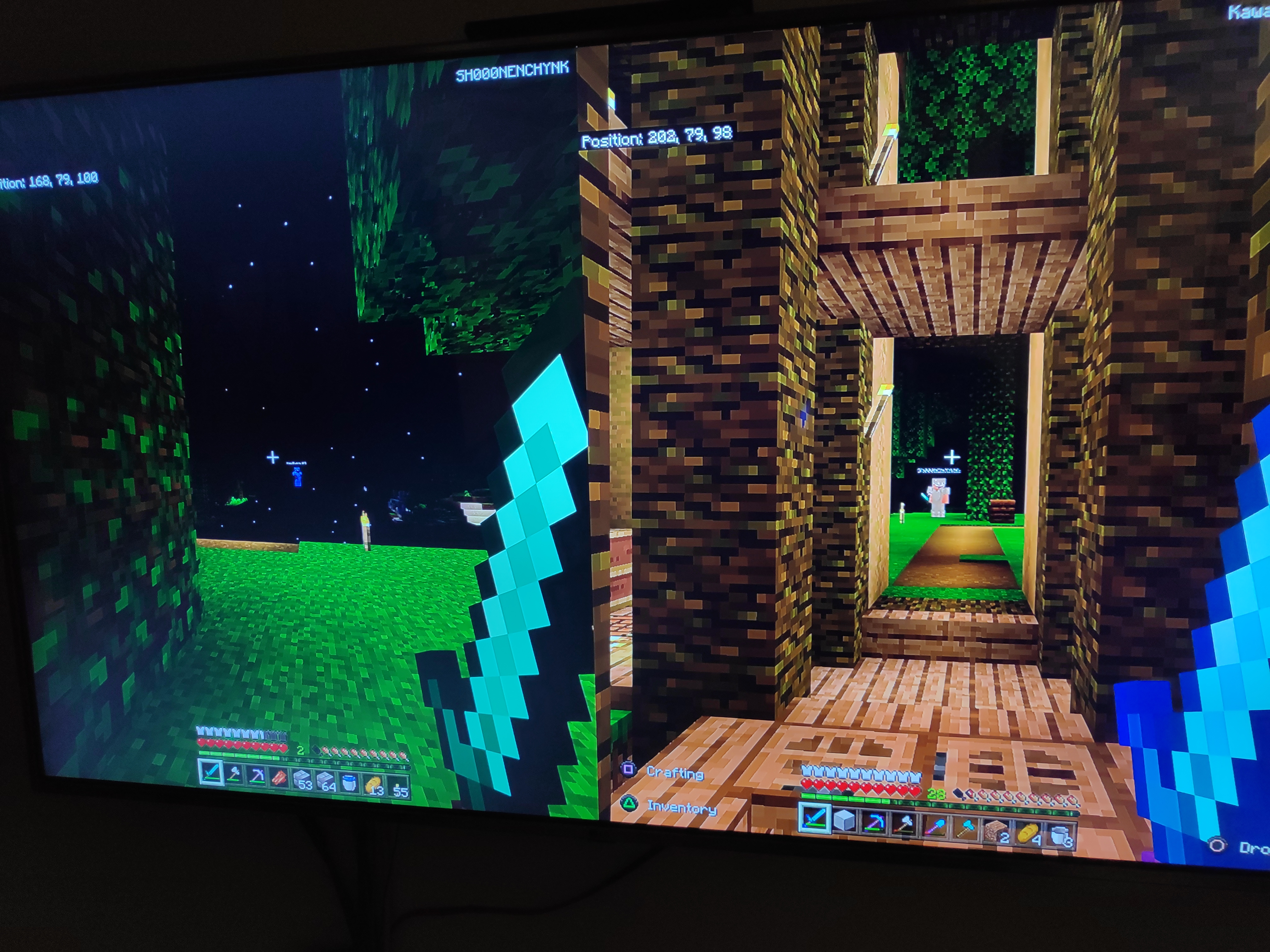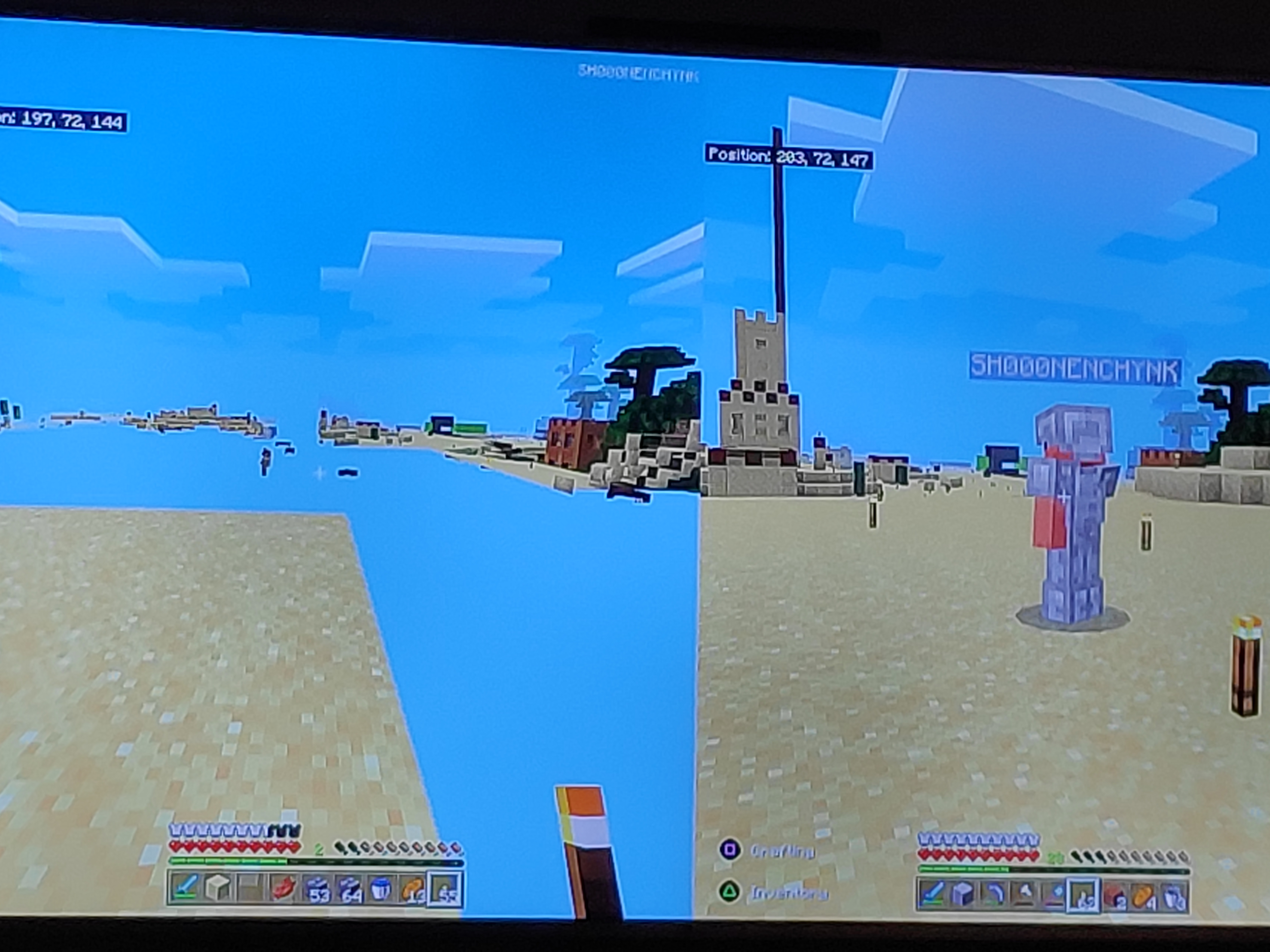If we're lucky, player 1 and 2 can go the the nether, and player 1 has better chances of loading complete terrain with no hang times or closing the application.