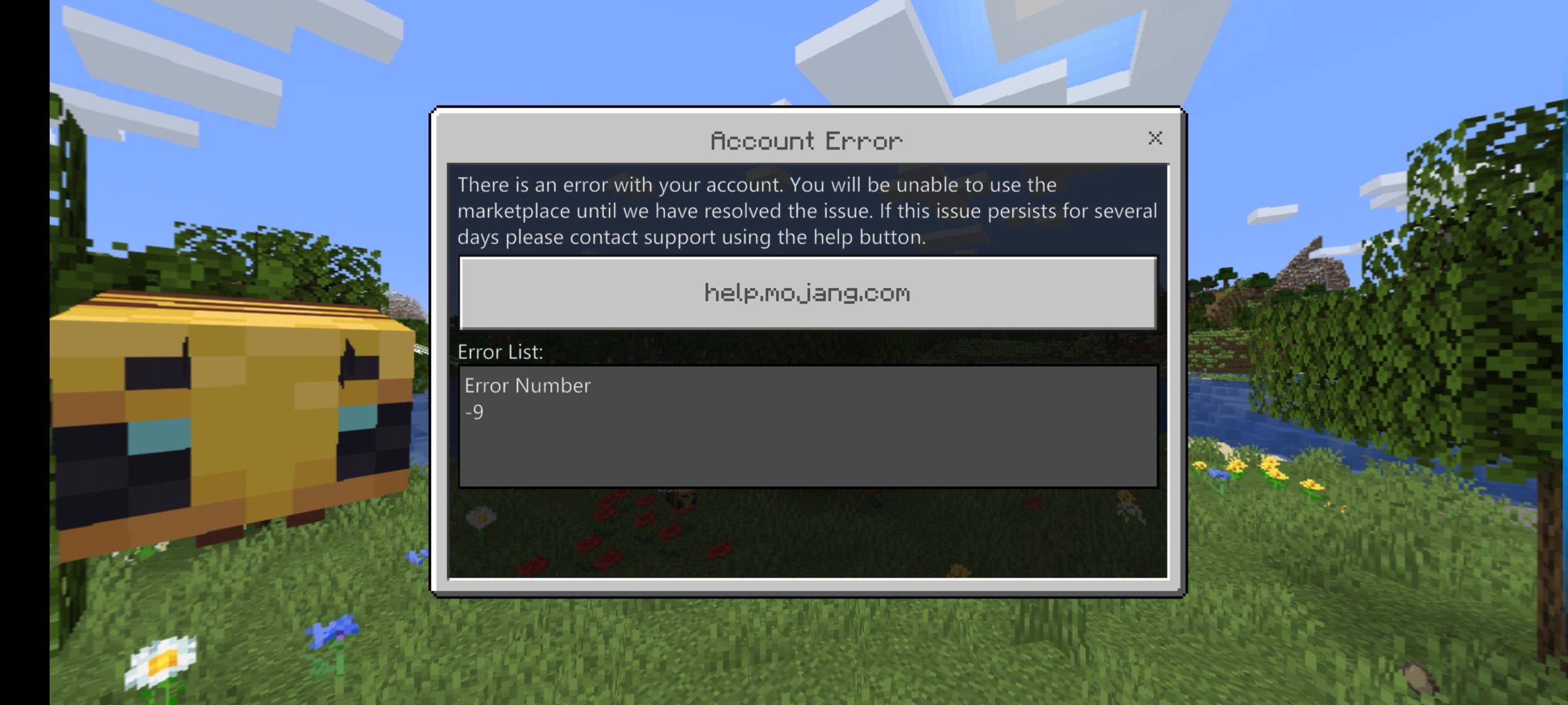 Some users report that account error -9 comes up randomly when launching Minecraft while online, and does not depend whether the internet connection is wifi or wired connection. (MCPE-63727)