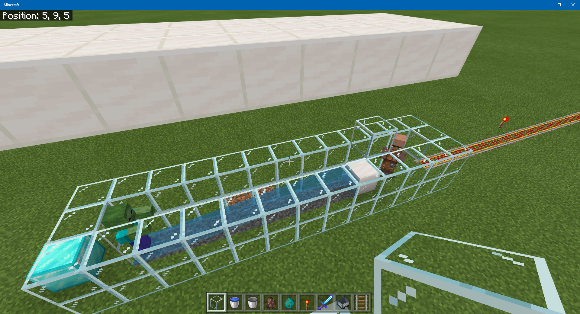 You can't see it very well, but in the villager test the villager was spawned next to a bed, then transported by minecart to the test setup, which is outside the village boundaries.