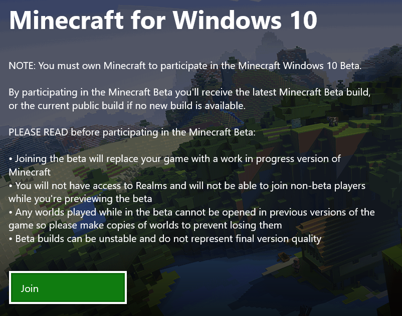 The Microsoft Store doesn't realize that I'm not enrolled in the betas for Minecraft for Windows 10.