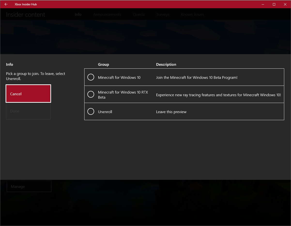 I joined the Beta on March 17, 2020. But today, I wanted to join my Cousin in a World, so I tried to leave the Beta Programm, successless. Please remove that Bug!
