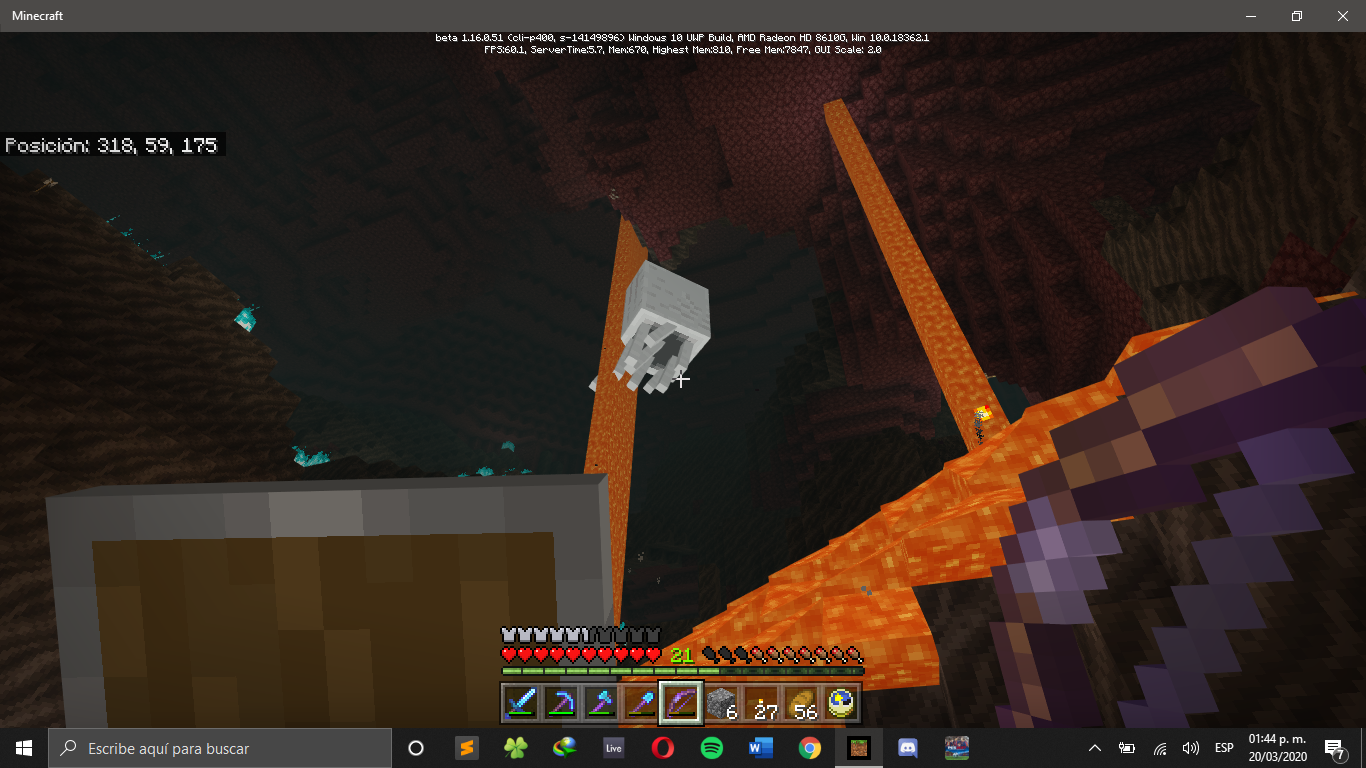 Another bug I noticed when playing the beta, is that exploring the nether near a Crimson Forest biome, a ghast got stuck in a chain of falling lava, and couldn't move.