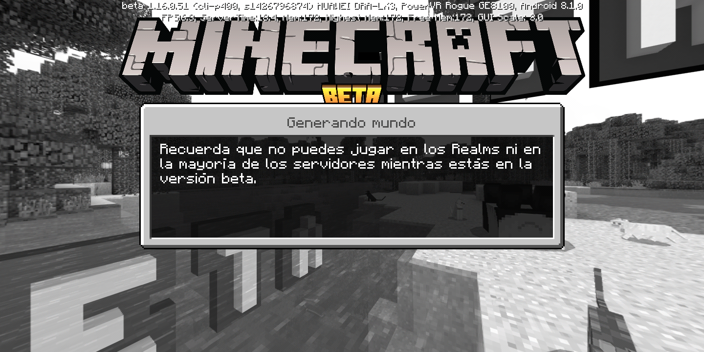 Hay un problema en la versión 1.16.0.51 de Minecraft Beta, el problema se trata en que inicias un mundo, pero cuando ya casi se va a cargar se queda congelada la pantalla y de ahi no carga