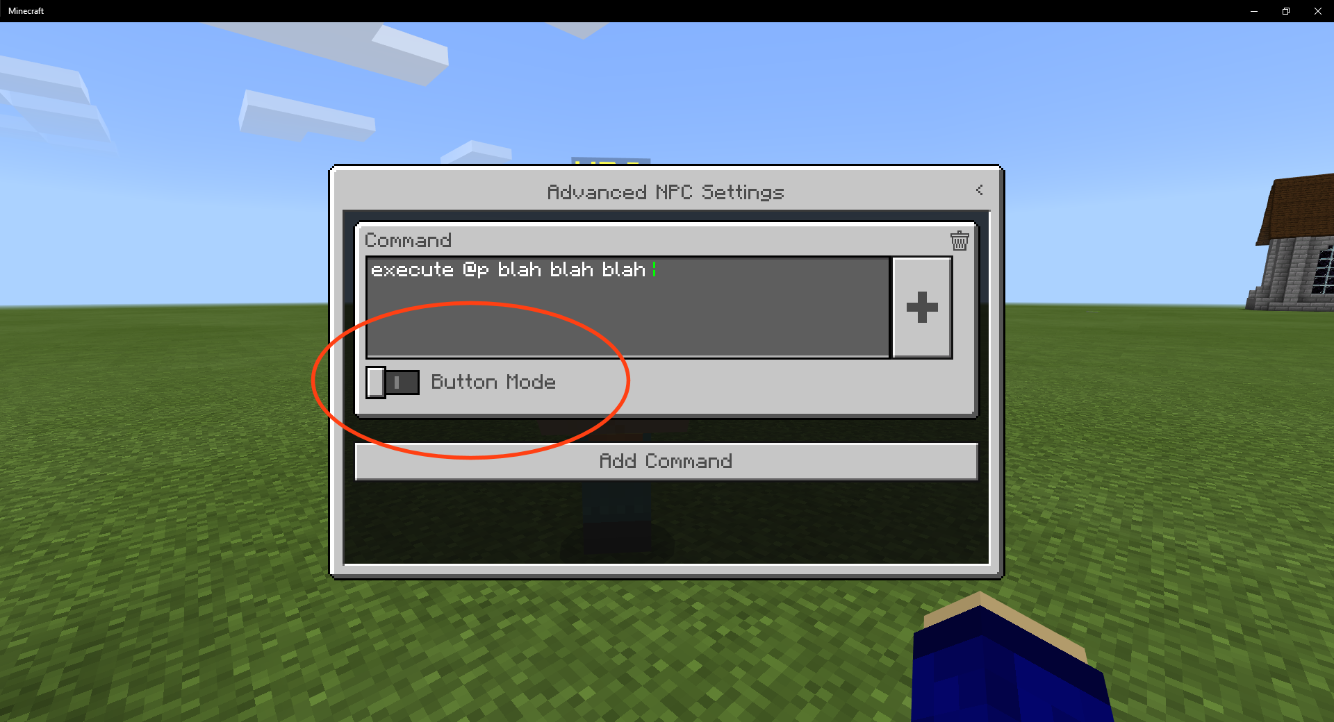 When you summoning NPC then go under advanced settings and add a command and go to button mode it should right past it and go to add command the reason why there should be fixed is because the button mode is really useful BART map makers and four People Like Us and I love that feature.