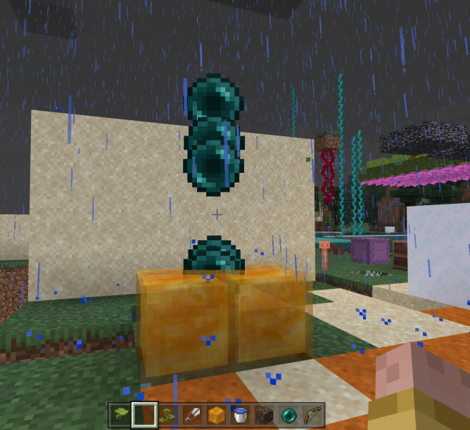 It is not just throwing between two honey blocks, you can do this with one block, where you throw the projectile along the side of the block.
