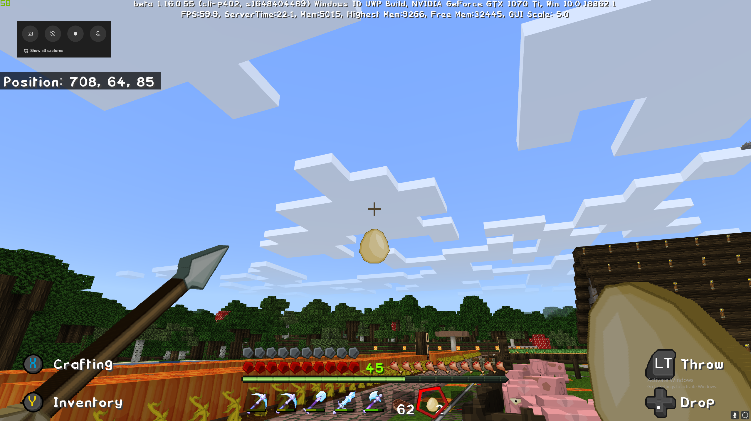 When I throw a chciken Egg sort of lower, there is a grey square on it. However, when I throw it a little higher, the texture has no problem. Wondering if it is trying to cast a shadow on the egg. I'm using the PureBDCraft Texture Pack. I'm also attaching a screenshot of both thowing the egg lower and higher for comparison.