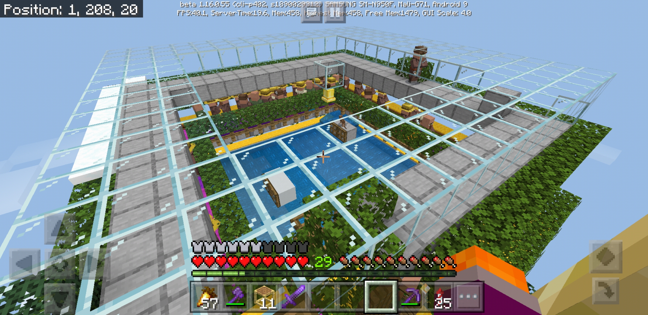 Each workstation is in front of the villager in one farm and villagers have free movement to pathfind in the other.