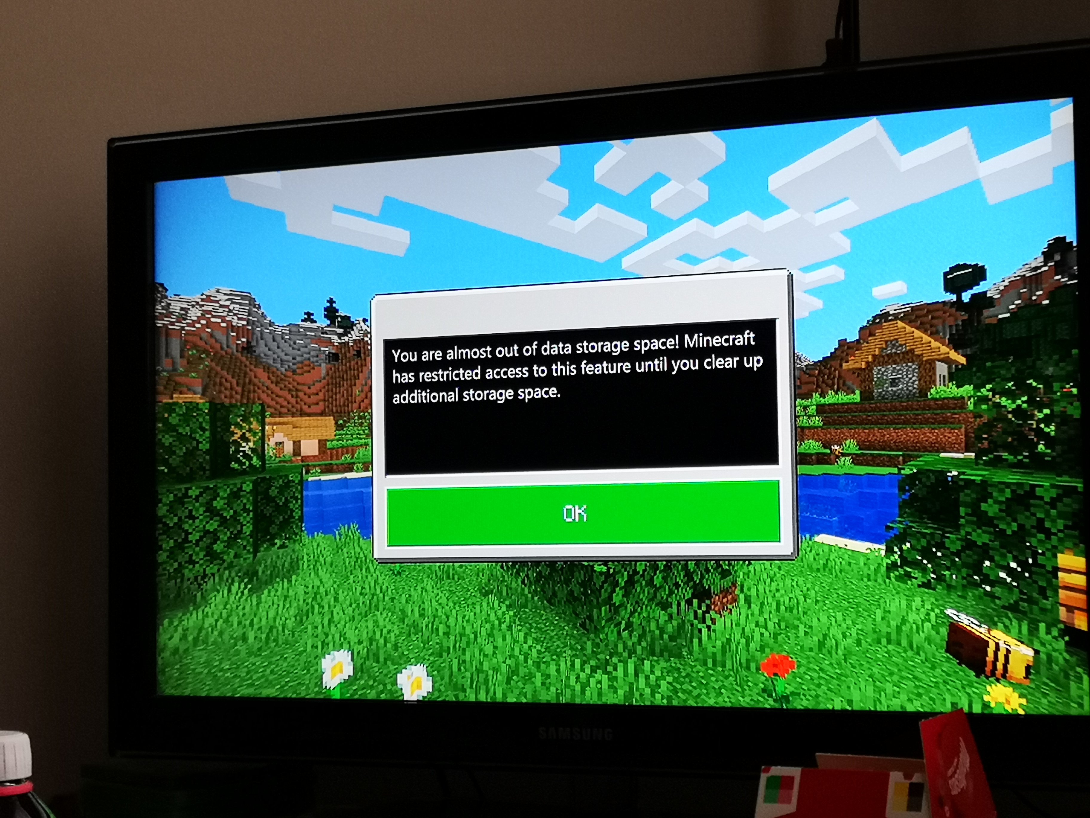 The error in full is as follows -You are almost out of data storage space! Minecraft has restricted access to this feature until you clear up additional storage space.