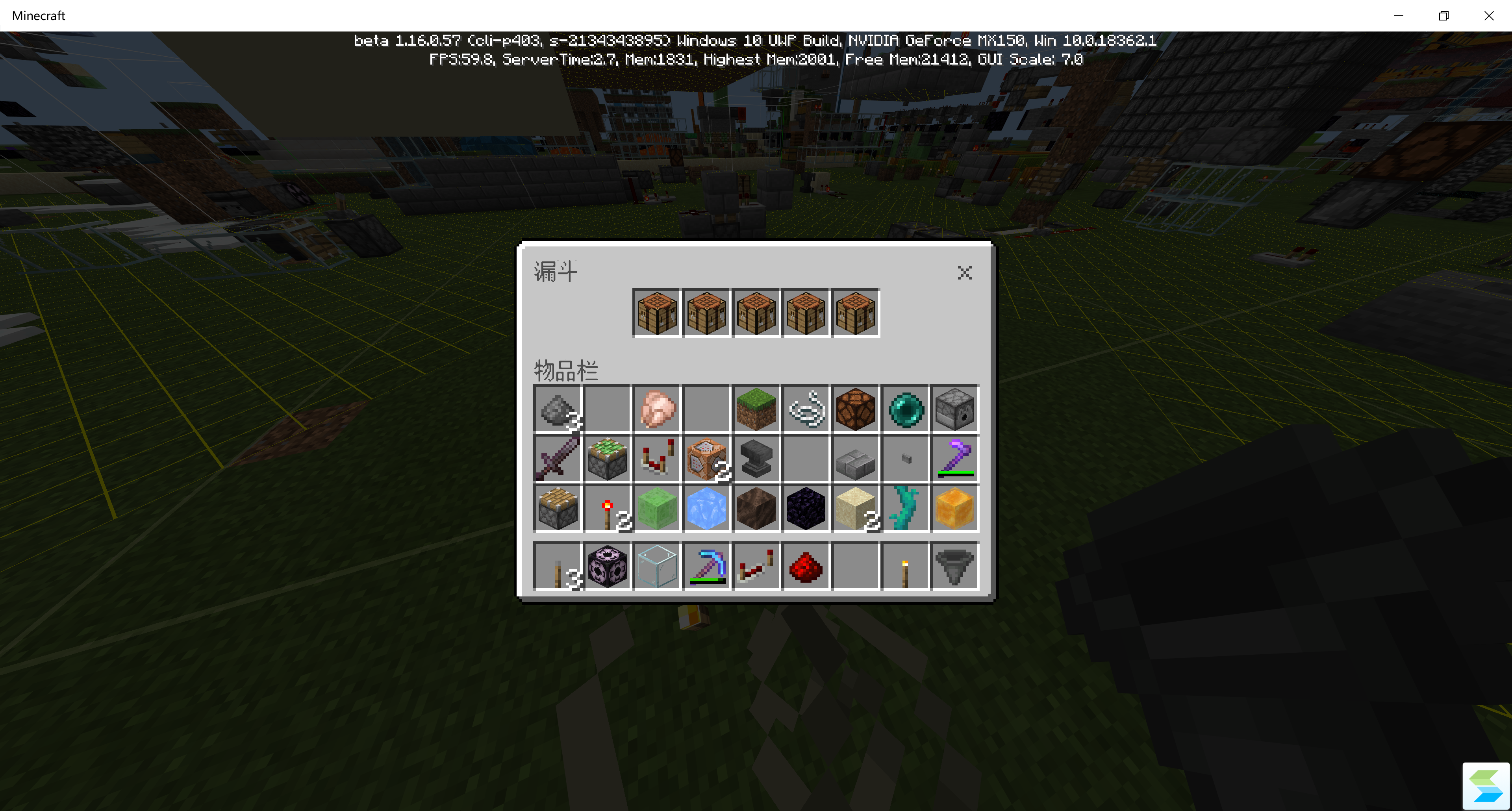 2.Place 5 item in it, occupy all 5 seats, take crafting table for example.